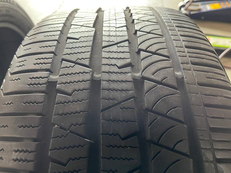This is a clean used set of factory Mercedes GLS tires. NO patches, no rips in bead, removed at our shop. The Continental Cross Contact LX Sport MO 275/45/21 107H fronts have 7/32nd (70% remaining) The rear 315/40/21 111H have 5.5/32nd (55% remaining) with 4718 DOT. (Note: All used tires are sold as is, no warranty, no returns) Perfect for a lease return, 50% of new cost with free shipping. (New tires retail for $1285.00 delivered)