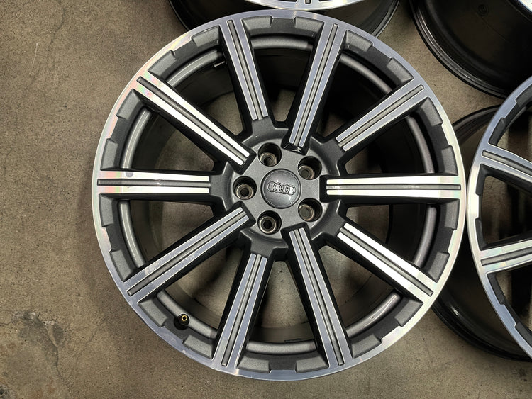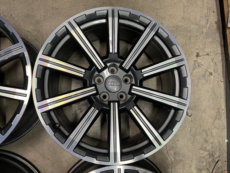 This is a gently used set of factory 2017 2018 2019 2020 2021 2021 2022 2023 2024 Audi Q7 20 inch wheels. Three have filed edge's, light scuffs, as shown in pictures. Caps included, no sensors. Bolt Pattern: 5x112mm