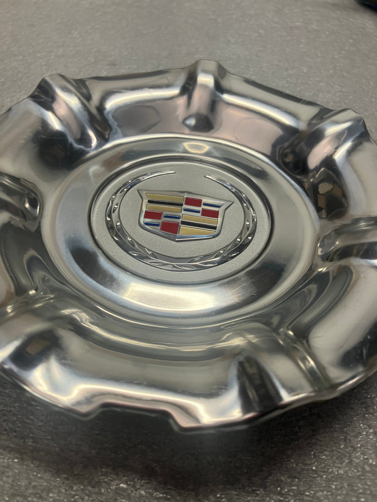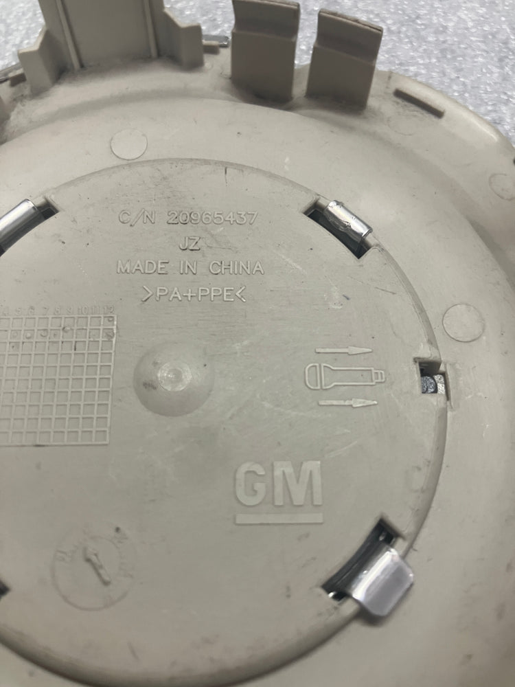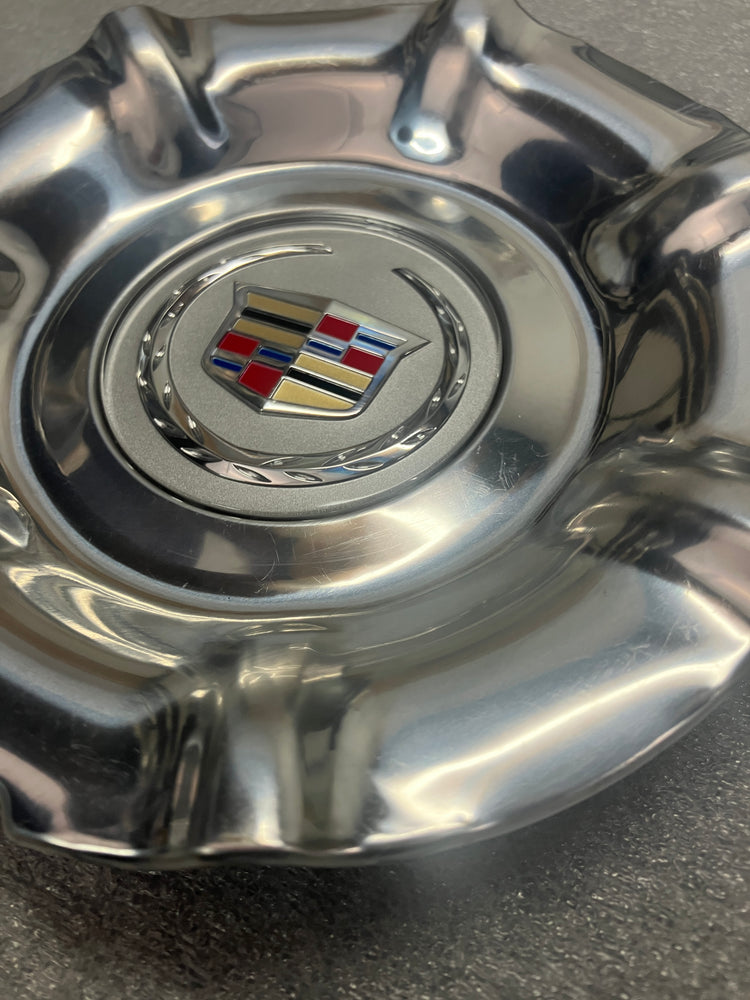 This is an authentic, OEM, Cadillac center cap in very good used condition with only minor blemishes. All the retention clips are intact and in good condition. Cadillac/GM part number 20965437. Wheel interchange number 4708.