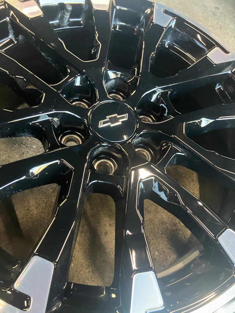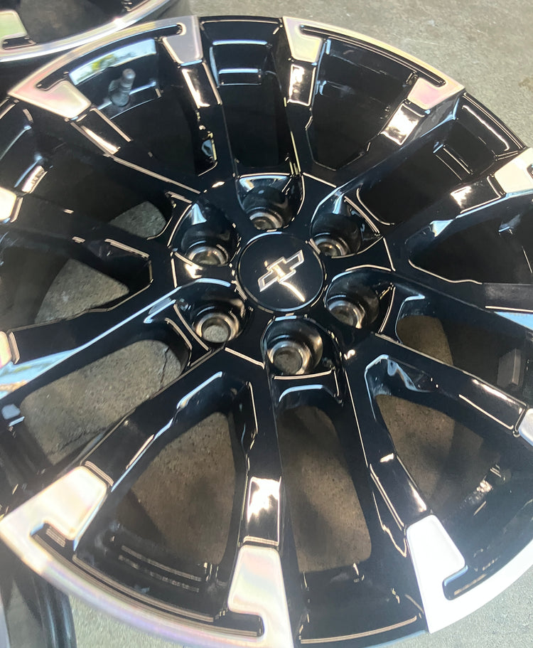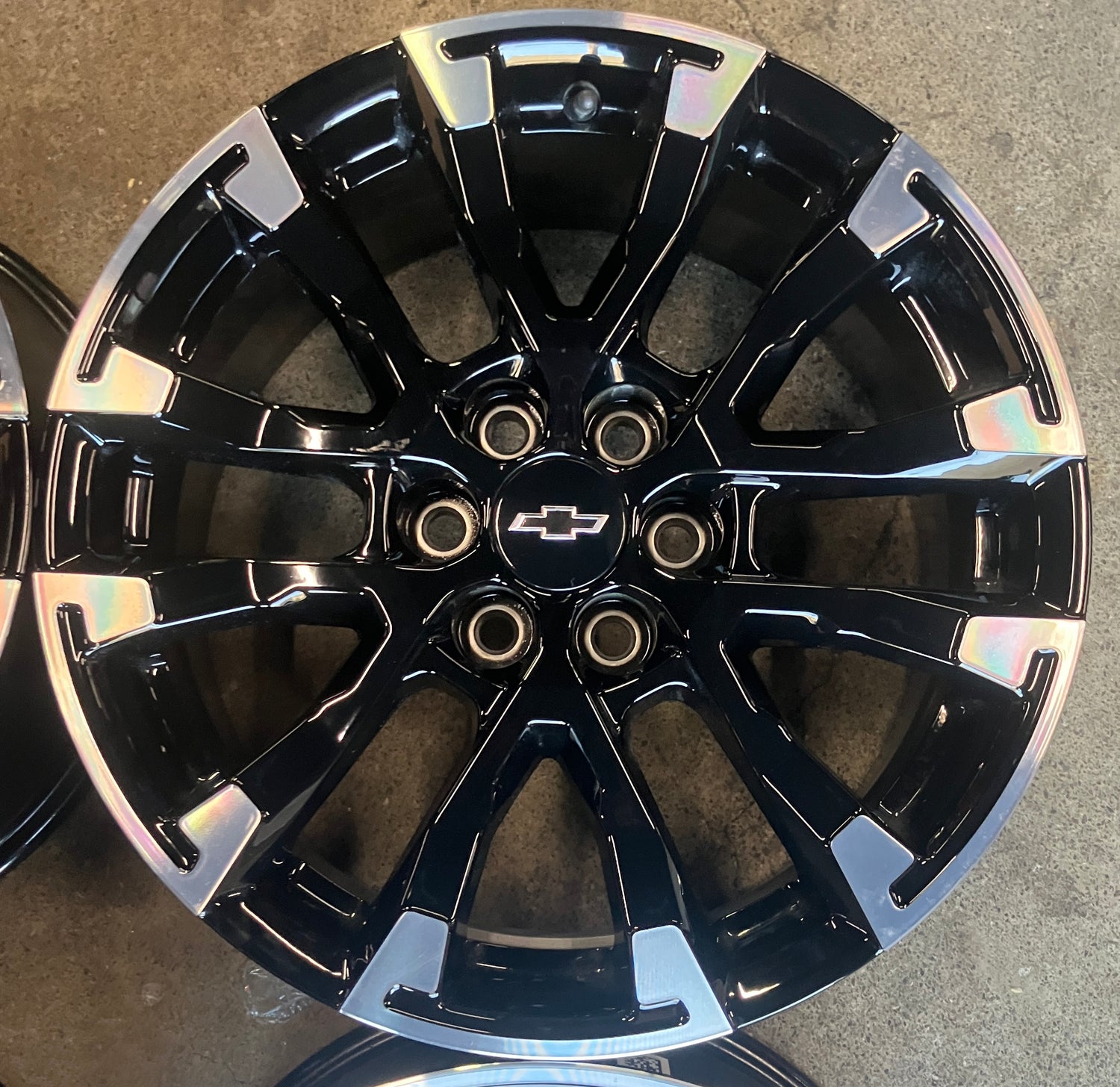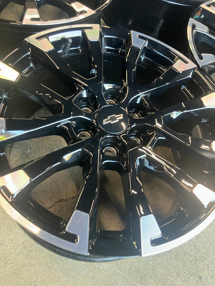 This is a Take-Off set of factory 2022 2023 2024 2025 Chevy Traverse 18 inch wheels. Light blemishes, as shown in pictures. Caps included. No sensors. (Note: All used wheels may have light blemishes not shown in pictures when looking up close)
