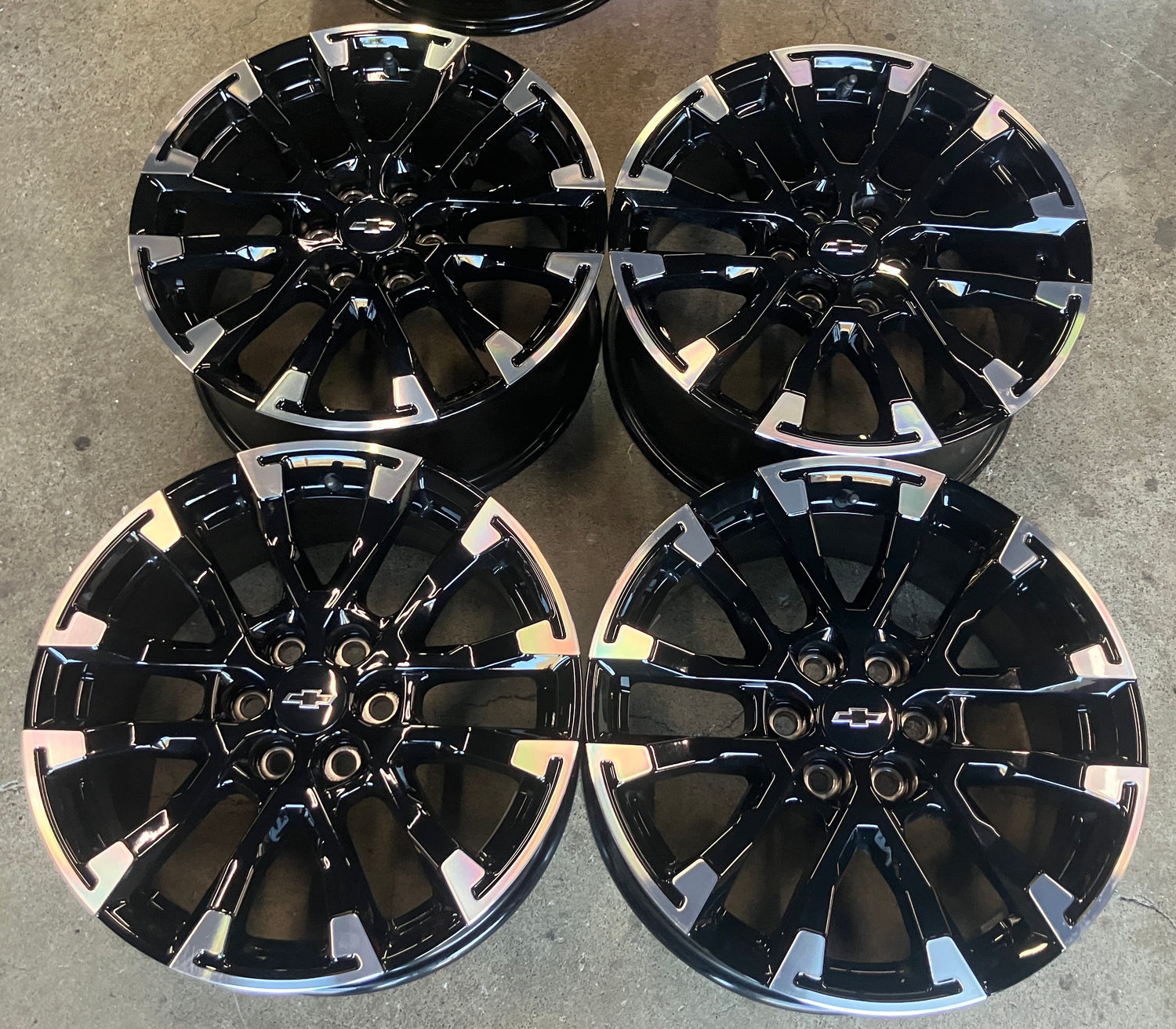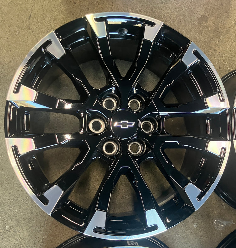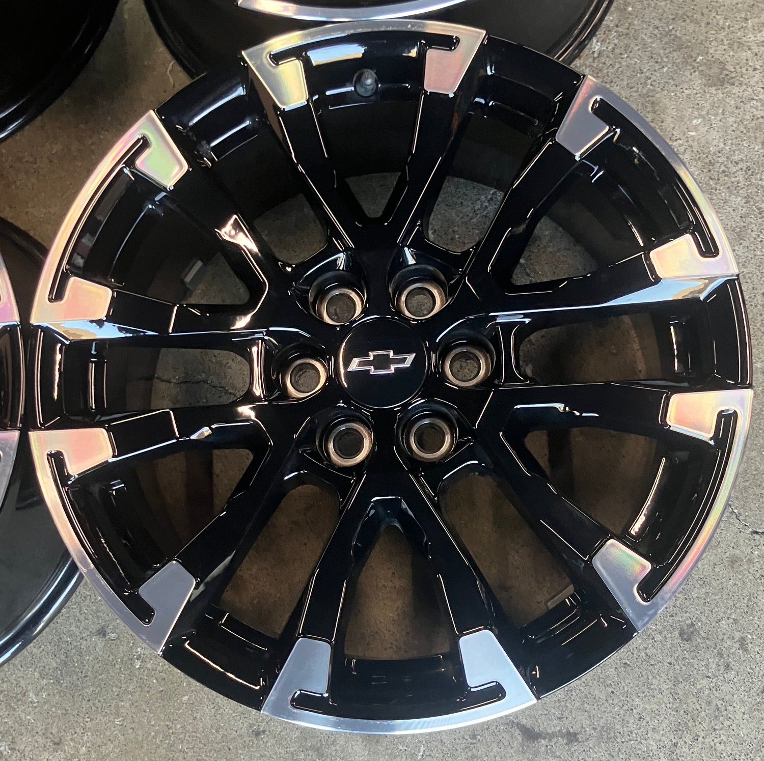 This is a Take-Off set of factory 2022 2023 2024 2025 Chevy Traverse 18 inch wheels. Light blemishes, as shown in pictures. Caps included. No sensors. (Note: All used wheels may have light blemishes not shown in pictures when looking up close)