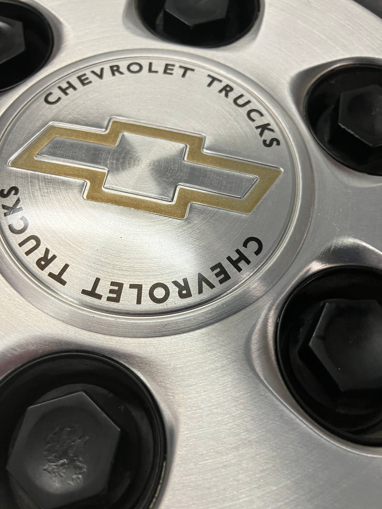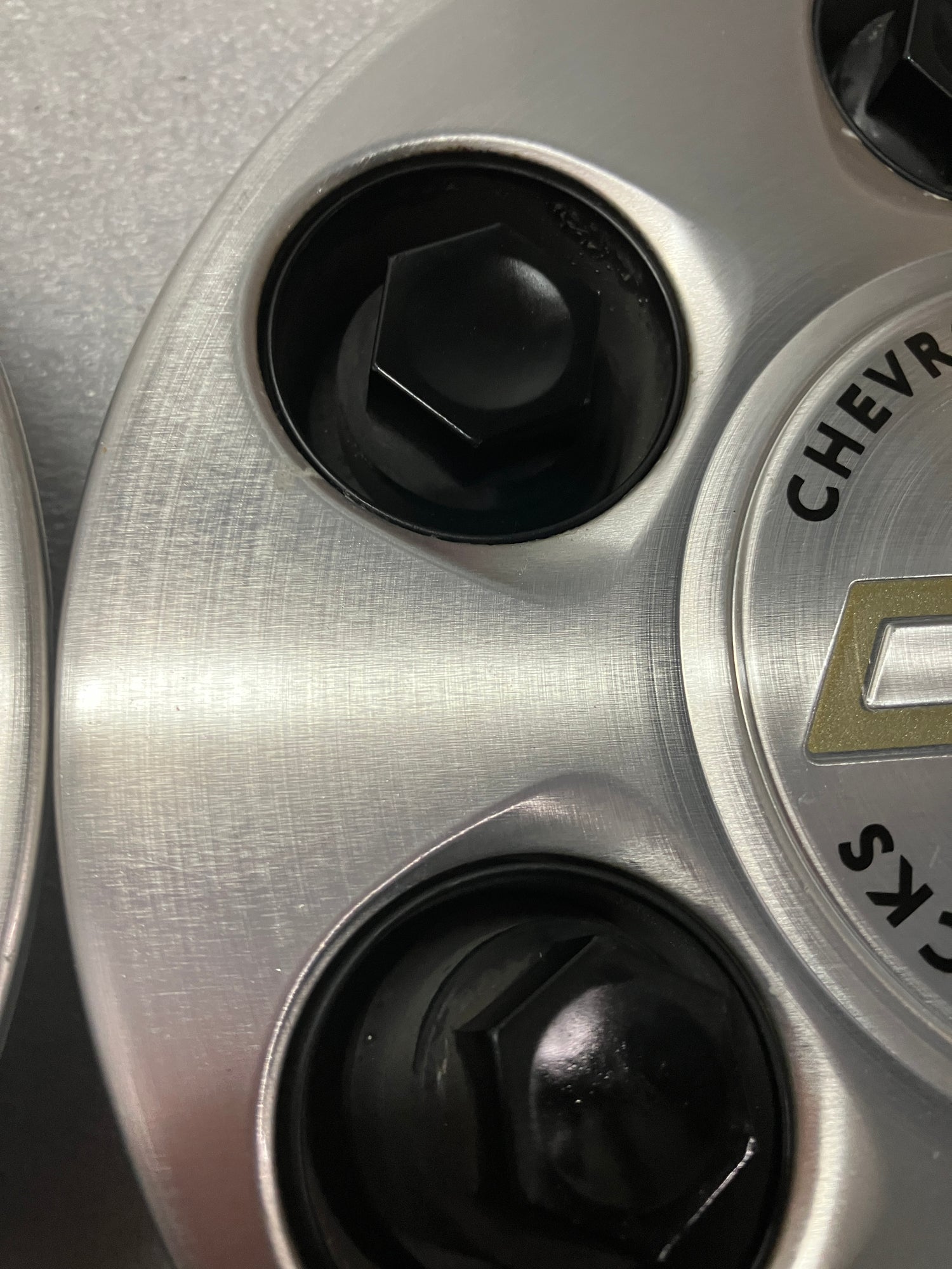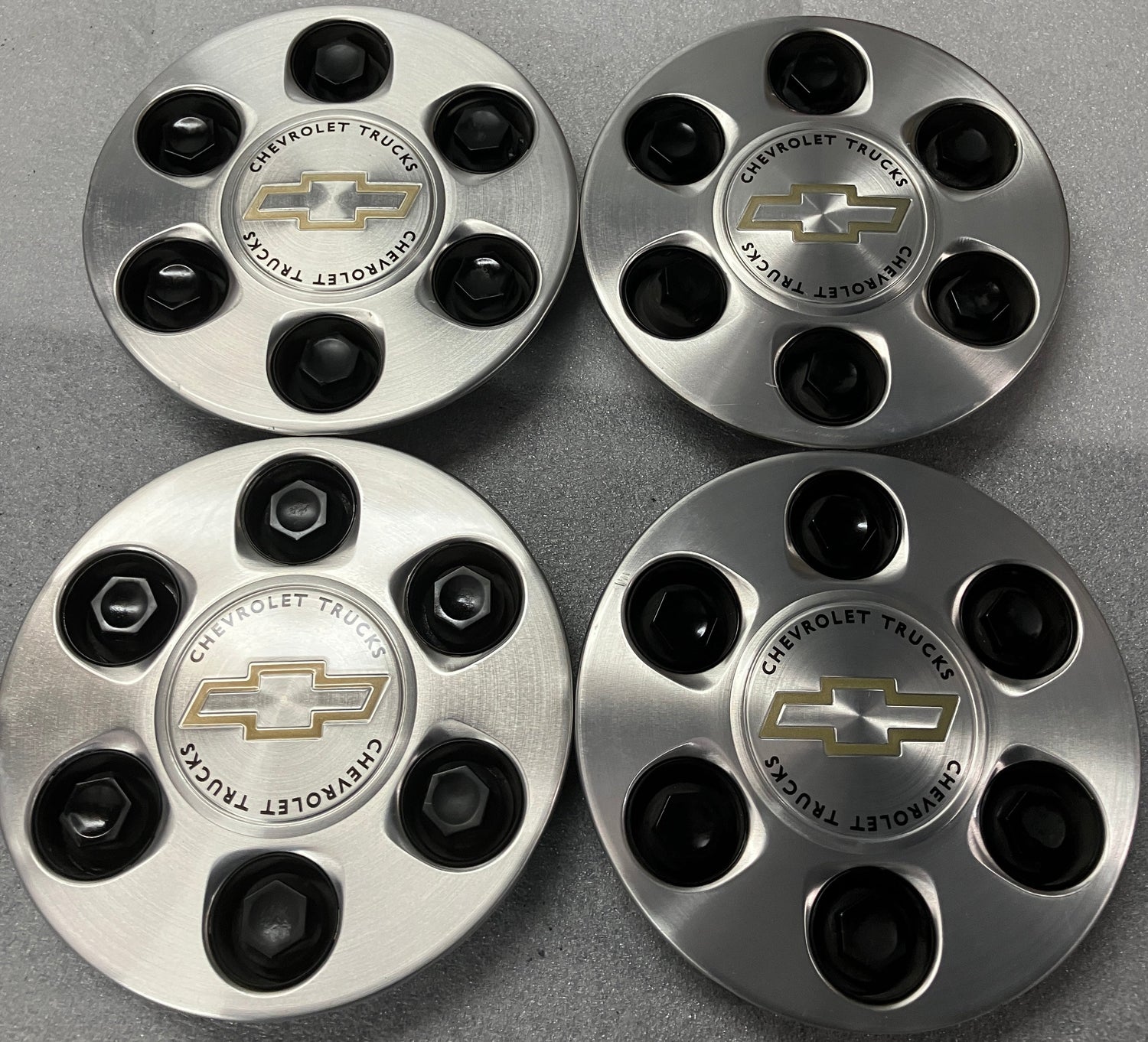 Set of 4, authentic, OEM, Chevrolet center caps. These are used caps with some blemishes so please look at the pictures. All the retention lugs are intact and in good condition. Chevrolet part number 15712387.