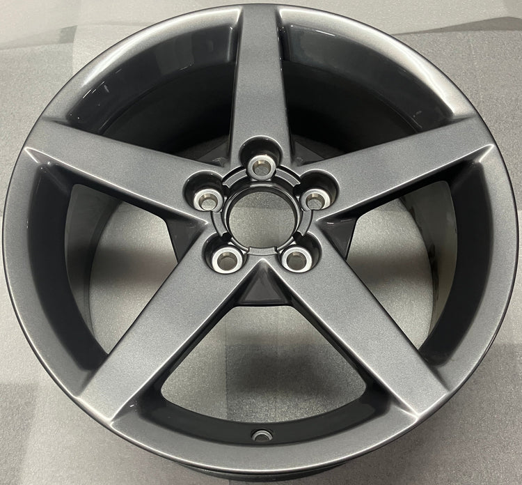 This is an authentic, OEM, 2005 2006 2007 Chevrolet Corvette 18 Front wheel. This is a new part in new condition, open box. GM part number 9594346. Interchange number 5207. This wheel is a front wheel in its original charcoal finish. No Cap, No sensor.