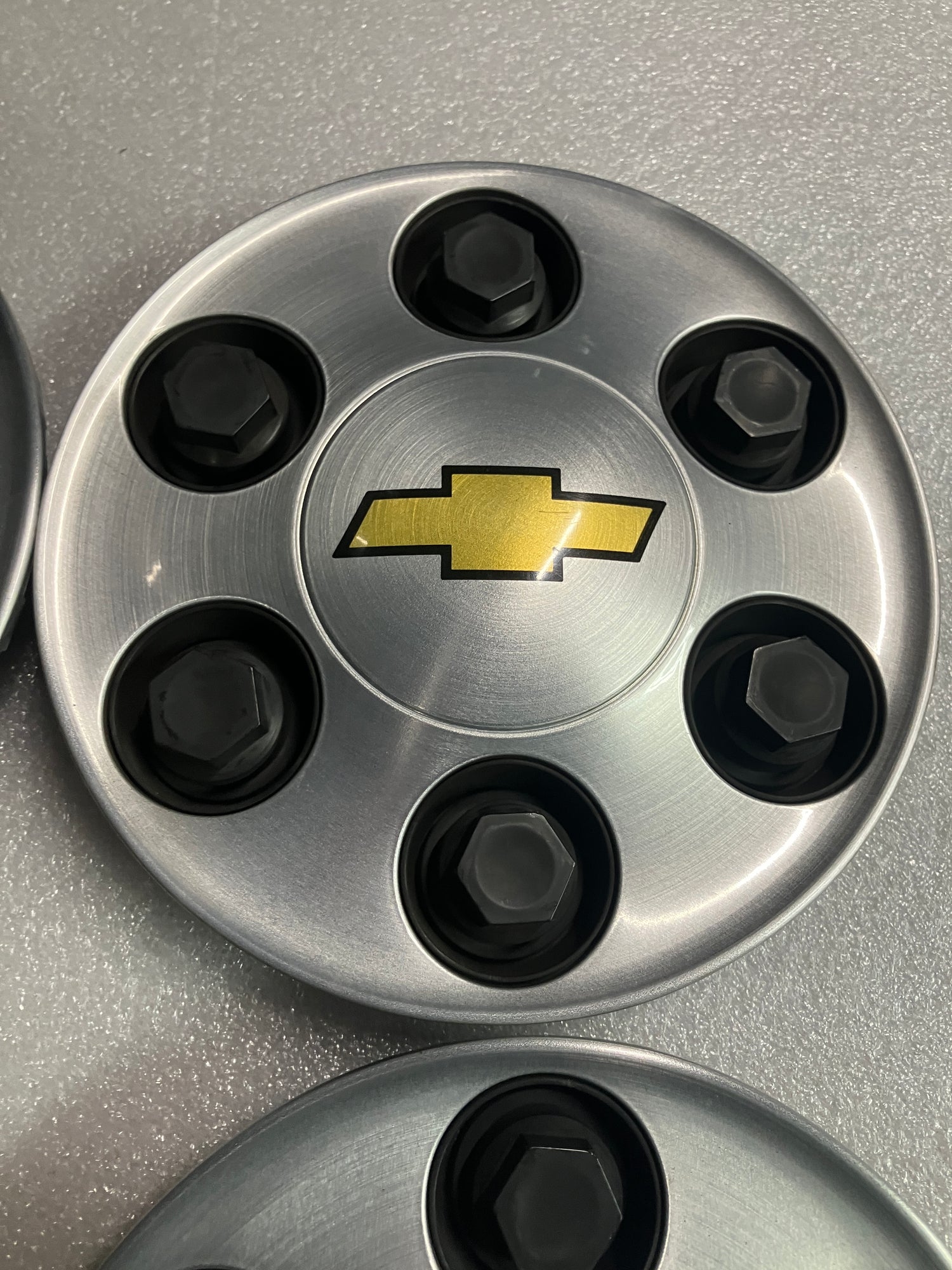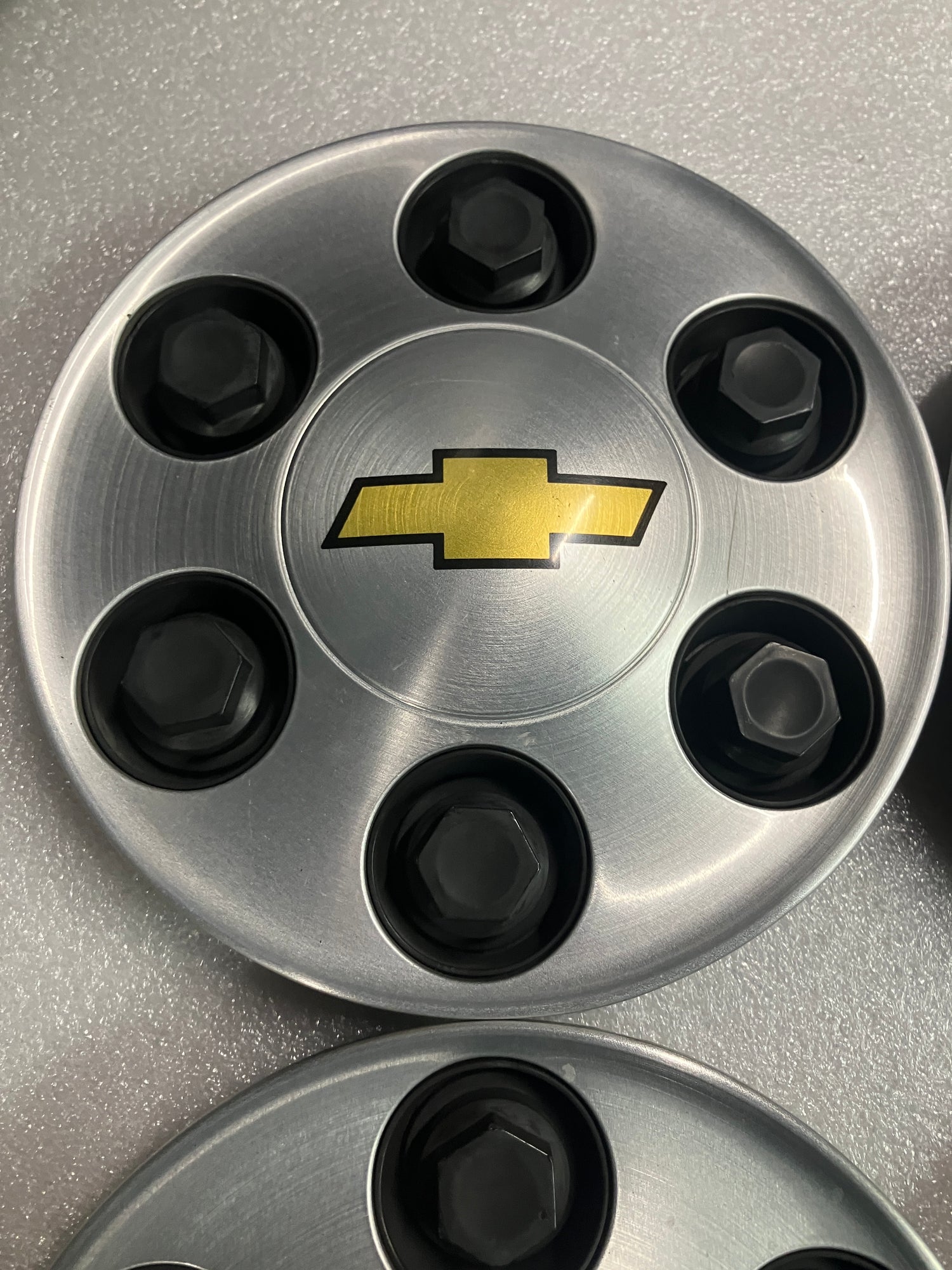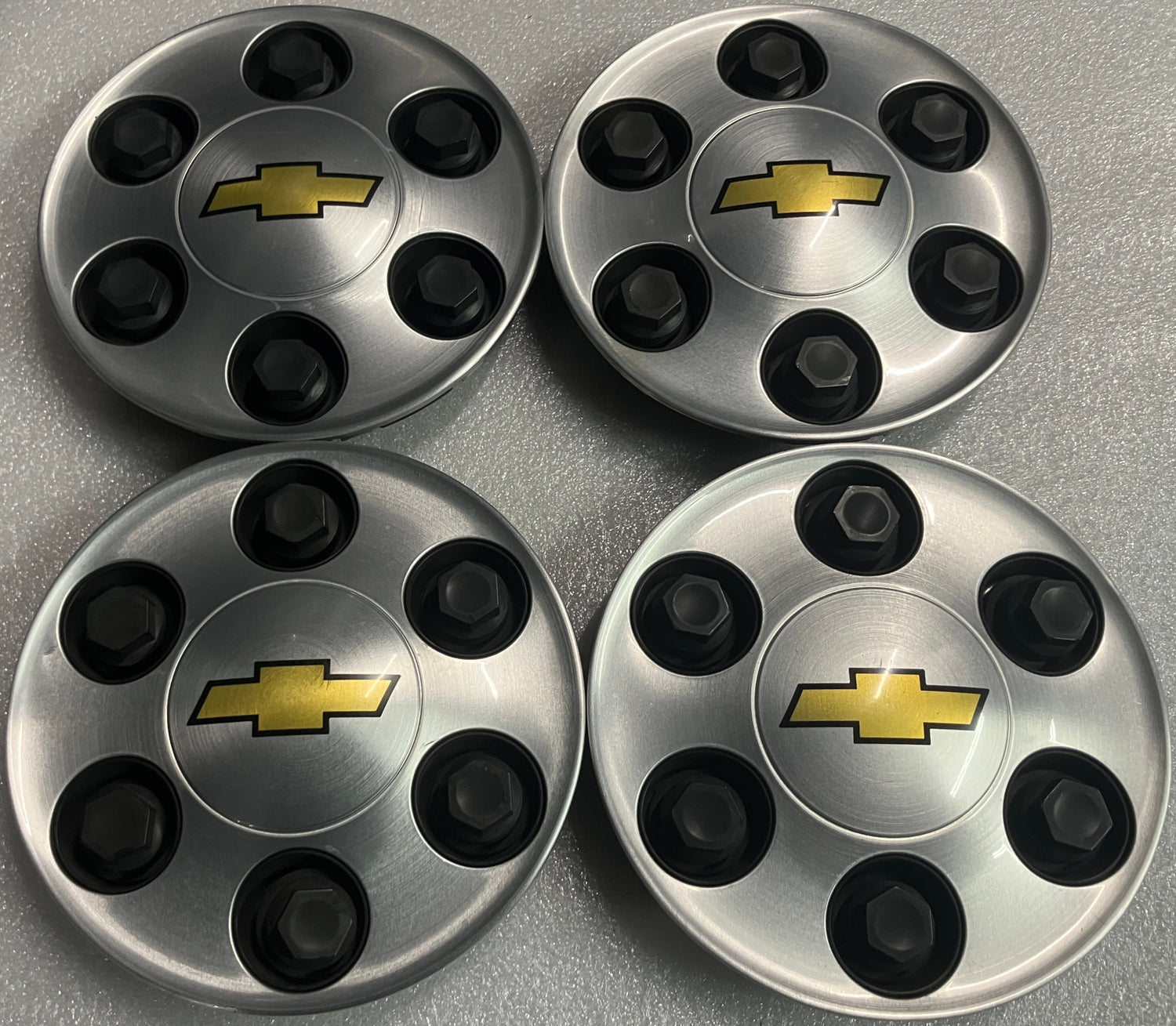 Set of 4, authentic, OEM, Chevrolet center caps. These are used caps in good condition with only minor blemishes. All the retention lugs are intact and in good condition. Chevrolet part number 9596341.