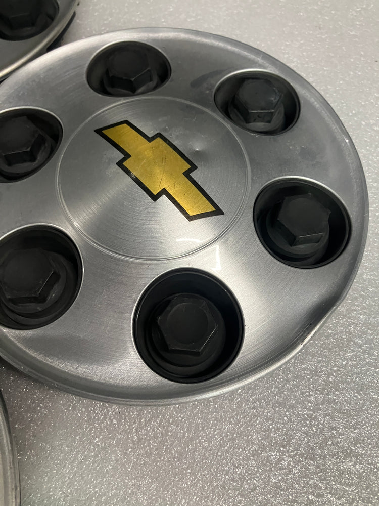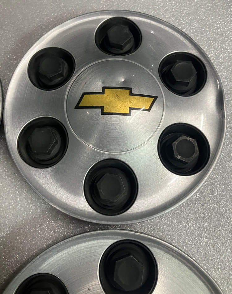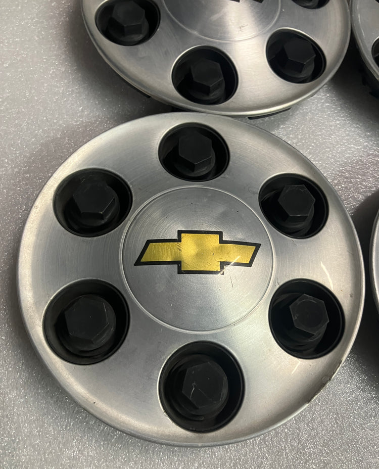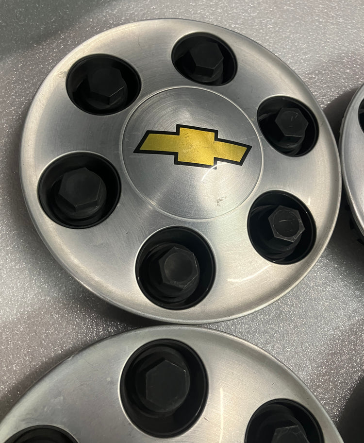 Set of 4, authentic, OEM, Chevrolet center caps. These are used caps with several blemishes i.e. scratches and dings. All the retention lugs are intact and in good condition. Chevrolet part number 9596341.