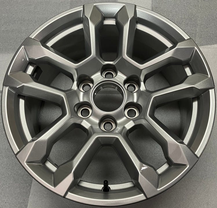 This is an authentic 2025 Chevrolet Silverado 18" wheel in excellent, take off condition. It is the factory silver painted finish. The wheel is guaranteed to be straight. GM part number 84775274. No Cap, No sensor.