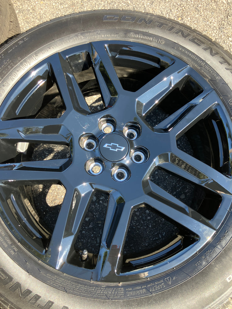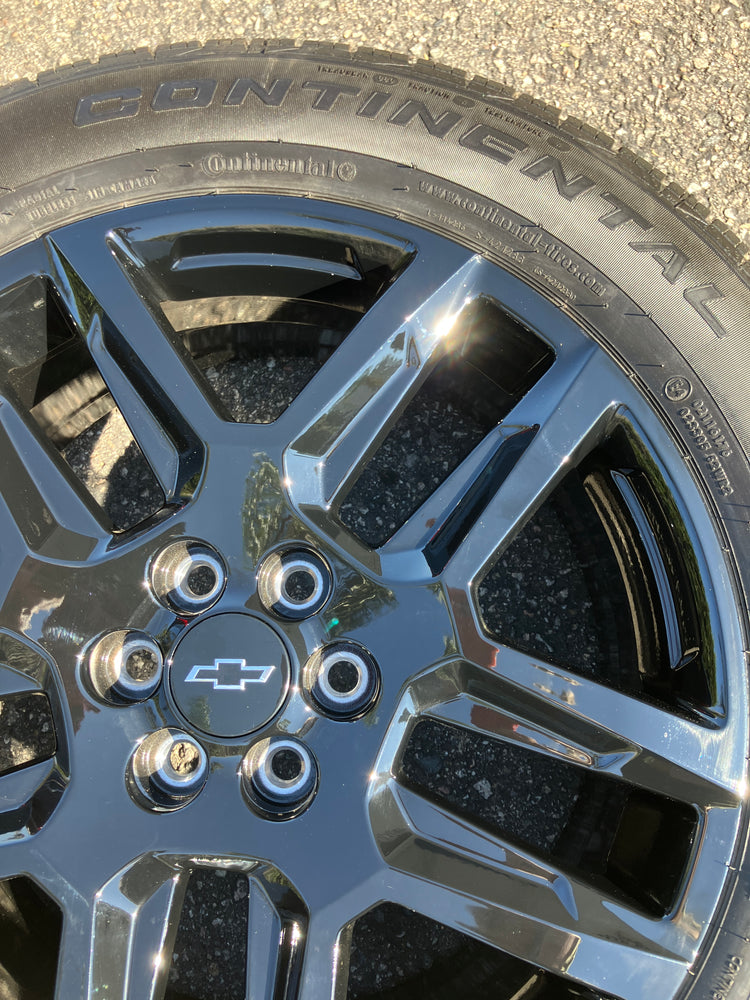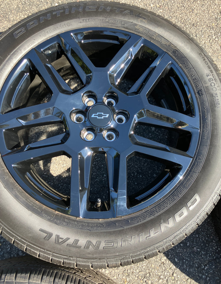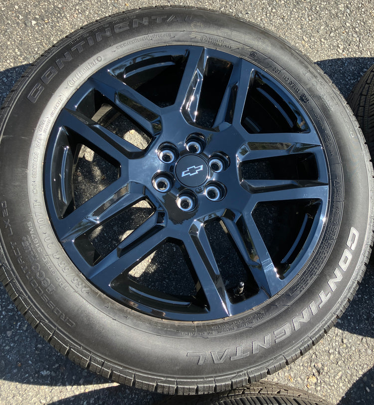 This is a takeoff set of 2024 Chevy Traverse / Blazer 20 inch wheels and tires. Original gloss black finish. The 255/55HR20 Continental Cross Contact LX 20 have 99% tread left with a 2023 DOT. Caps included, Sensors included. (Note: Sensors should fit 2018 to 2024 years, do NOT match 2025 models, However, sensors are free, we make no guarantees that they are compatible with your model year, no cash value, not responsible for sensor reset fees) Fits 2018 to 2025 Traverse, Blazer. Note: All used wheels may have light blemishes not visible in pictures when looking up close.