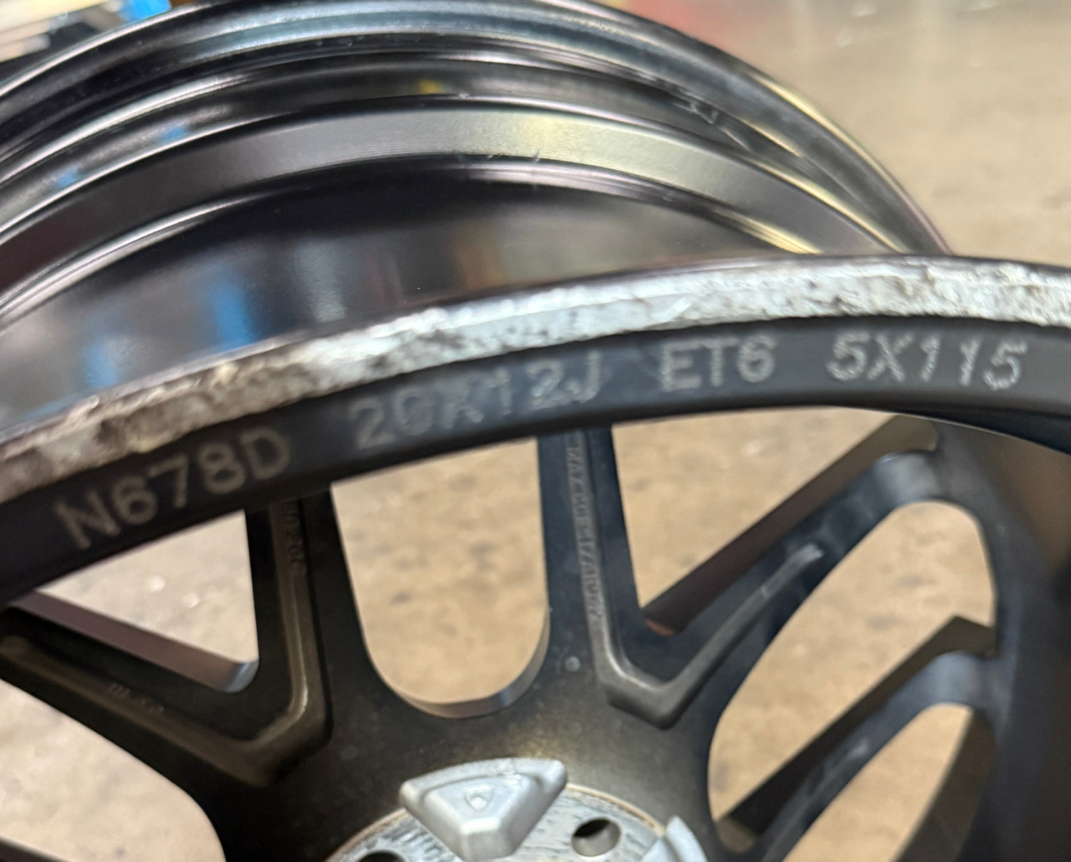 Inspection: All our wheels are visually inspected for structural integrity (no cracks), roundness and finish (using a balancer with run out measuring equipment). We only resell wheels that meet our safety standards.