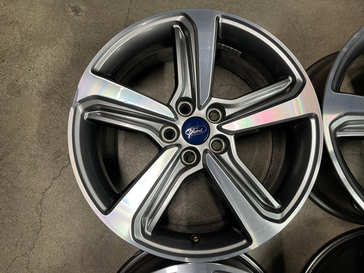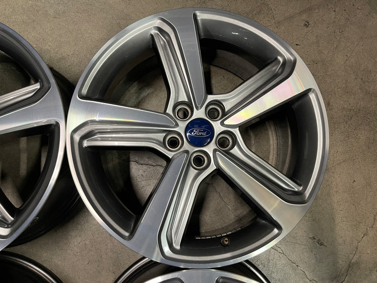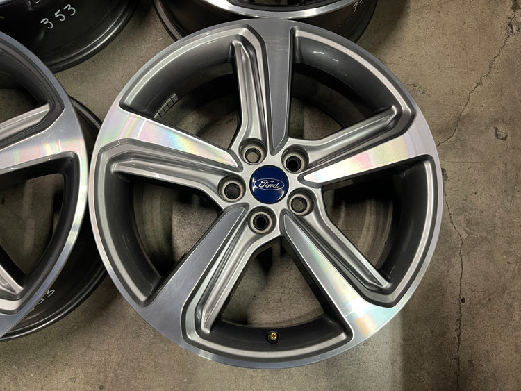 This is a Gently Used set of factory 2019 2020 2021 2022 2023 2024 Ford Edge 18 inch wheels. 5x108 bolt pattern, does not fit prior years. A few scuffs, one filled edge, as shown in the pictures. Caps included. No sensors.
