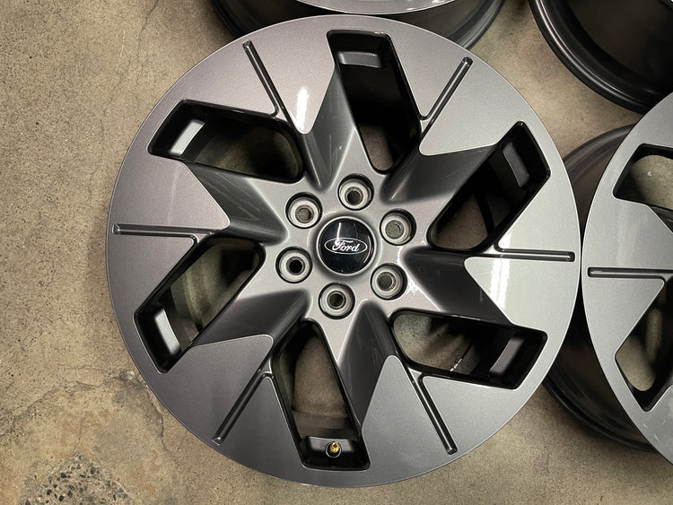 This is a clean Take-off set of 2022 2023 2024 2025 factory F150 Lightning 20" wheels. Caps included. No sensors.