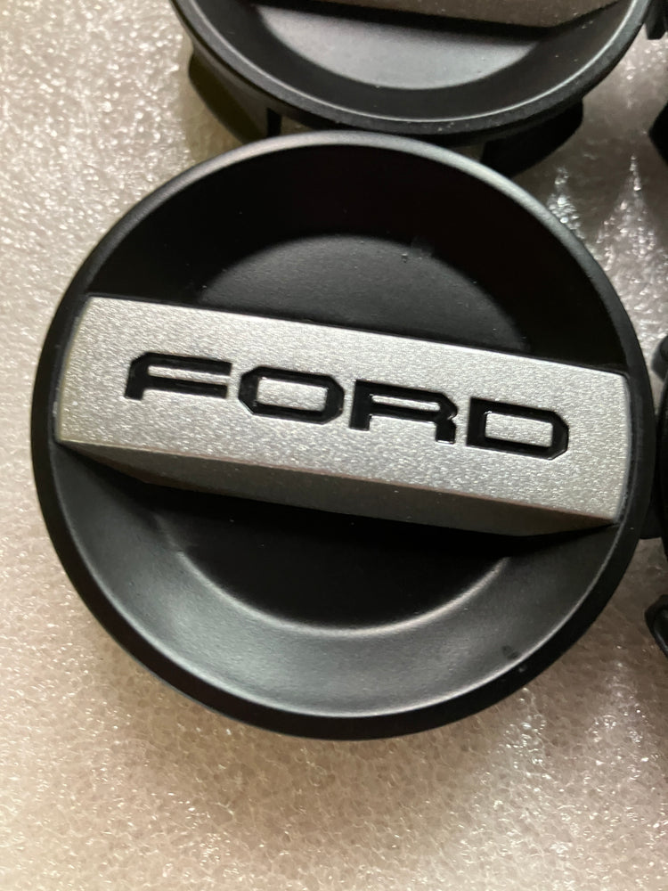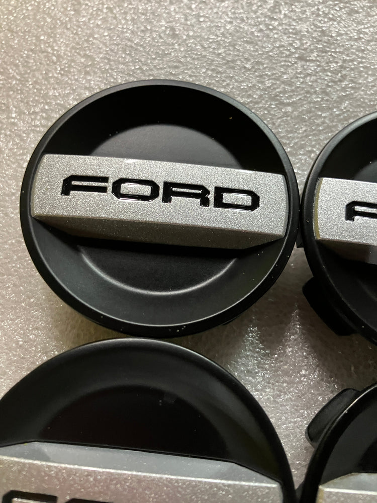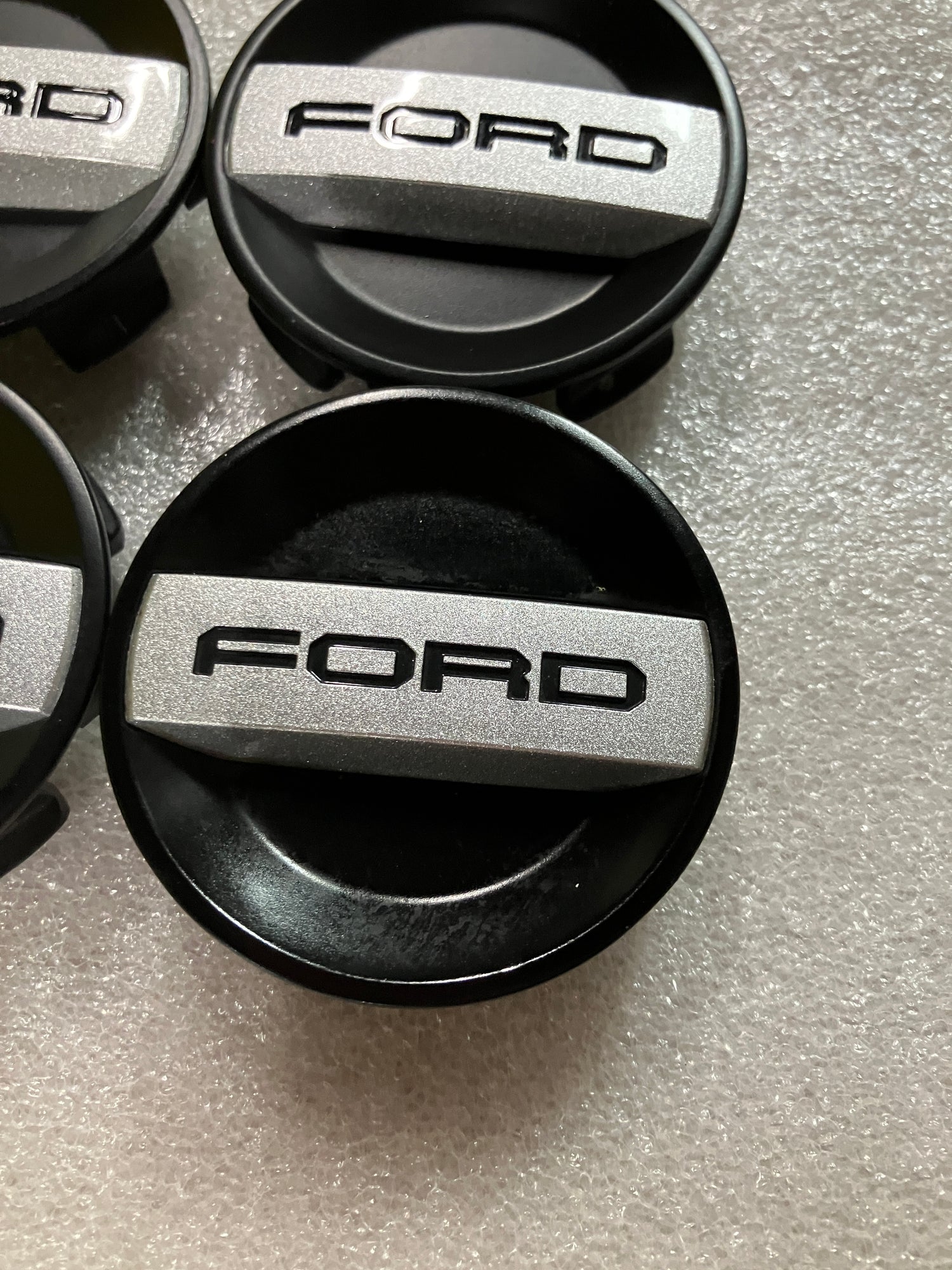 Set of 4 Authentic OEM FORD RAPTOR center caps. These are takeoff caps in excellent condition. All the retention clips are intact and good condition. These caps are the original semi gloss black finish. FORD part number - KL3V-1A096-BA or HL3V-1A096-AD.