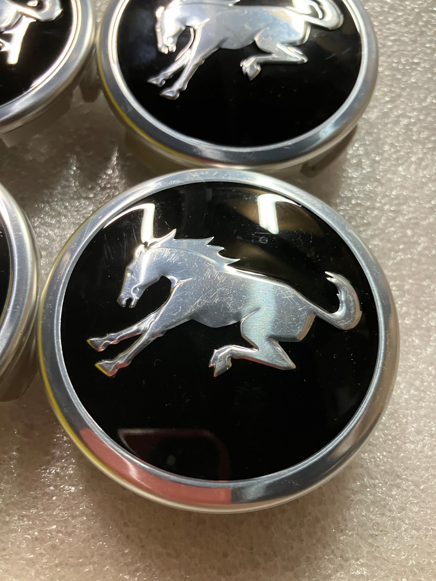 Set of 4 Authentic, OEM, FORD Bronco center caps. These caps fit most Bronco FULL SIZE alloy wheels. These caps WILL NOT FIT BRONCO SPORT models. These are in excellent, take off condition with only minor blemishes from being handled. All the retention clips are intact and in good condition. The part numbers on the back of the cap are - FL34-1A096-CB,FL34-1A096-HB,FL34-1A096-DB,FL34-1A096-EB, and FL34-1A096-GA