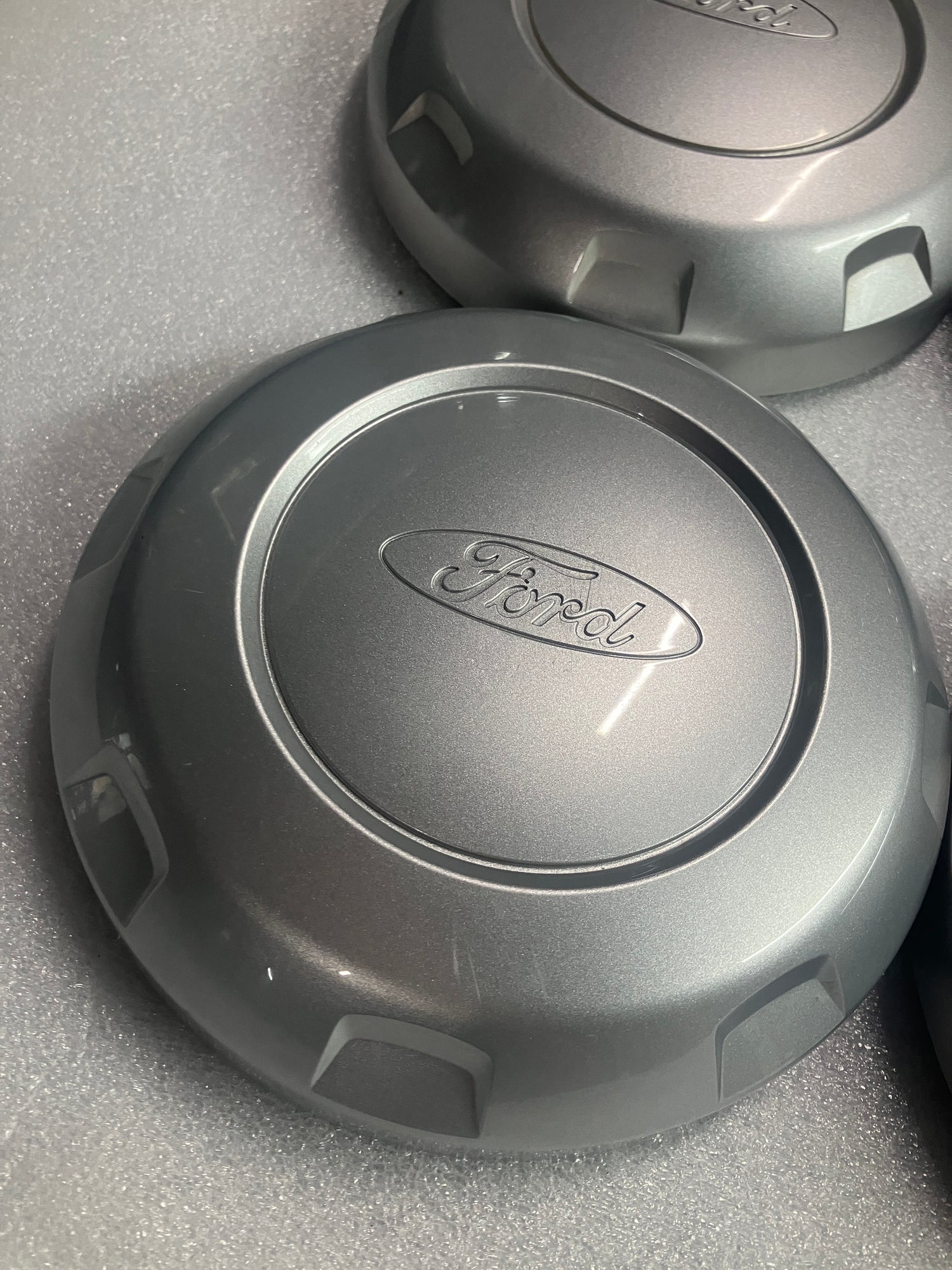 Up for sale is a nice set of takeoff FORD F-150 OEM center caps. These caps fit the standard 17" steel wheel used from 2014-2025. FORD part number-4L34-1A096-AB. All the retention clips are intact and in good condition.
