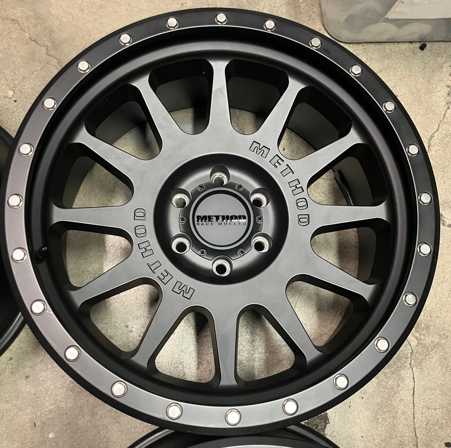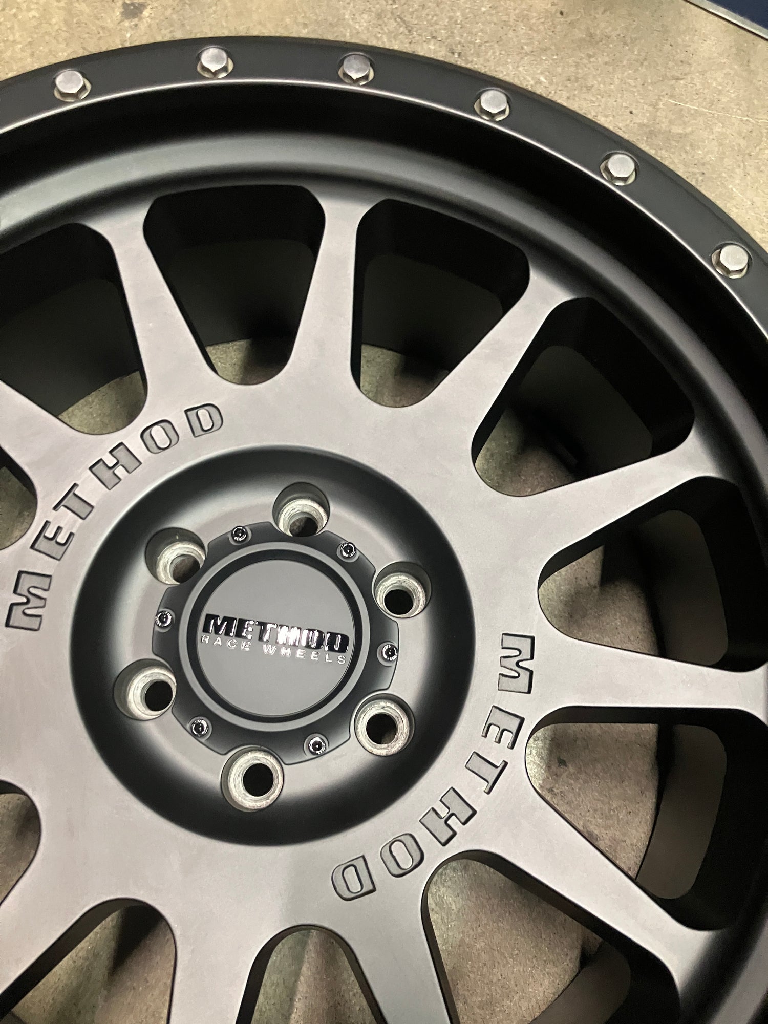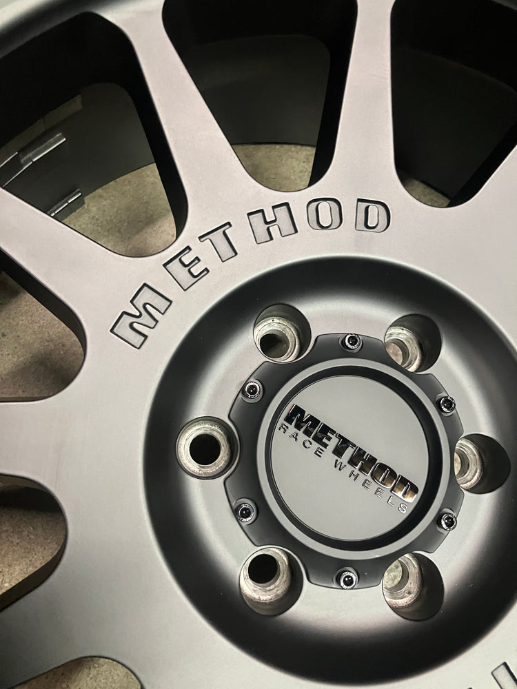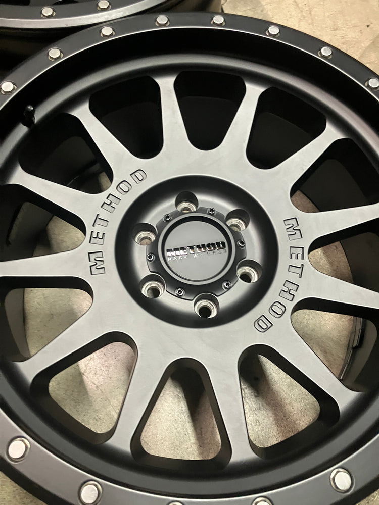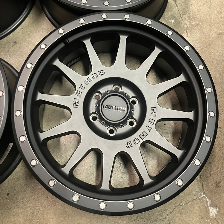 This is a used set of Method MR605NV 20x9 wheels -12mm offset to fit your Lifted Ford F150 6x135. All wheels have light scuffs, partial reconditioning. Inventory clearance / used / mounted / trade ins / sold as is / no returns / 50% off. Requires a lift kit for proper clearance.
