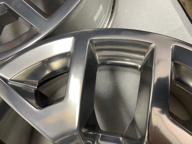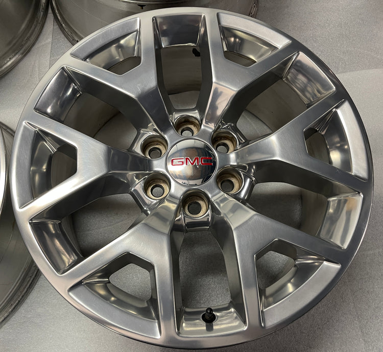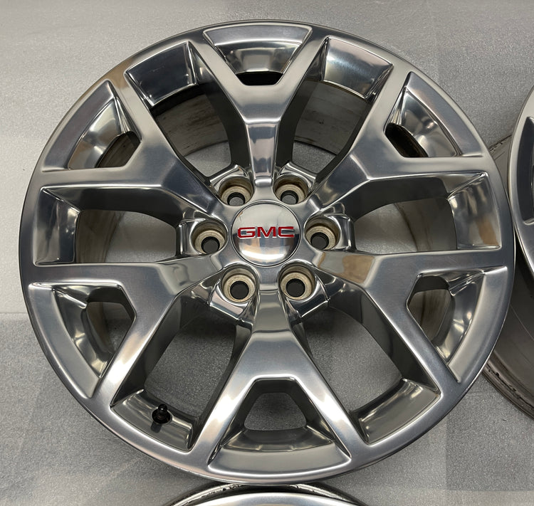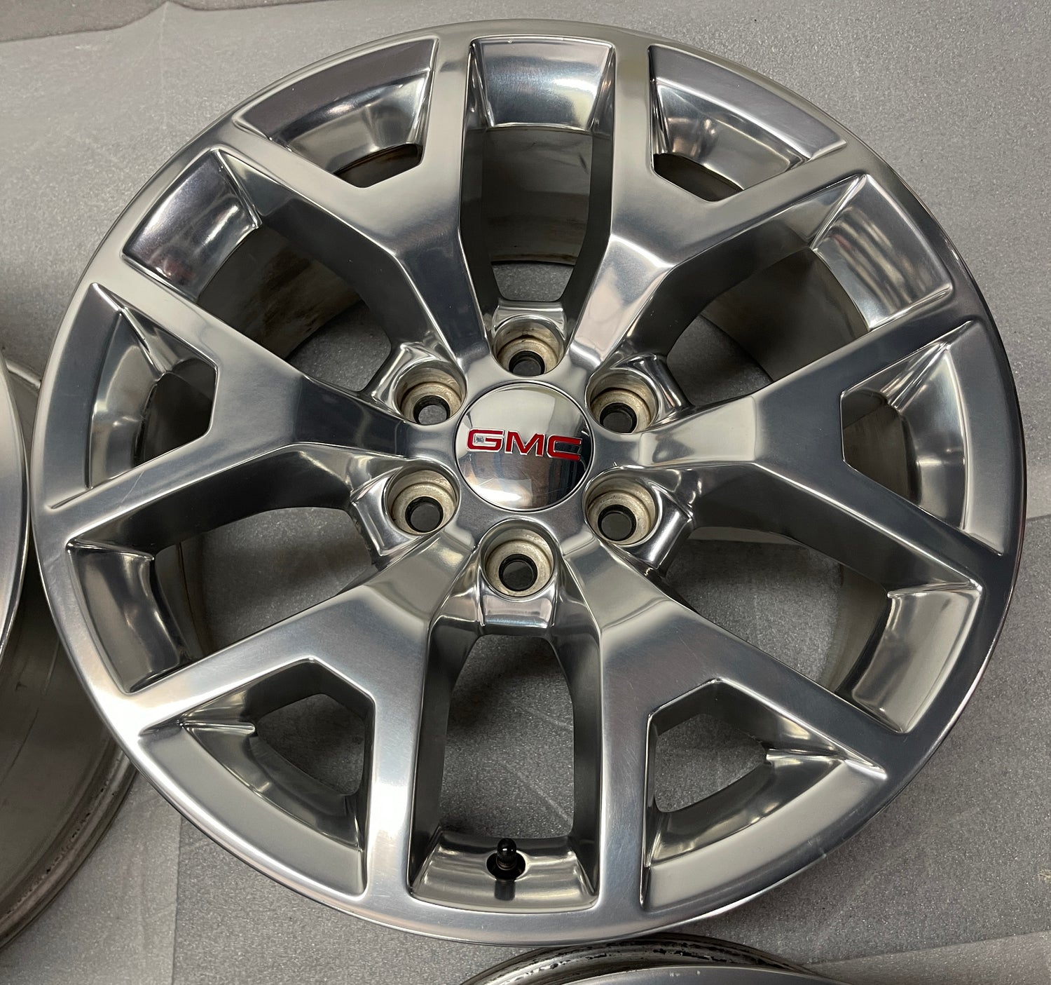 This is a used set of factory 2017 2018 2019 GMC Yukon 20" polished wheels. Wheels have lightly filled edges/lips, light scuffs, as shown in the pictures. Note: Does NOT fit 2020 and newer model (bigger brakes) Caps included. No sensors. Fits your 1999 2000 2001 2002 2003 2004 2005 2006 2007 2008 2009 2010 2011 2012 2013 2014 2015 2016 2017 GMC Sierra / Yukon / Denali / Silverado / Tahoe / 1500 / Suburban