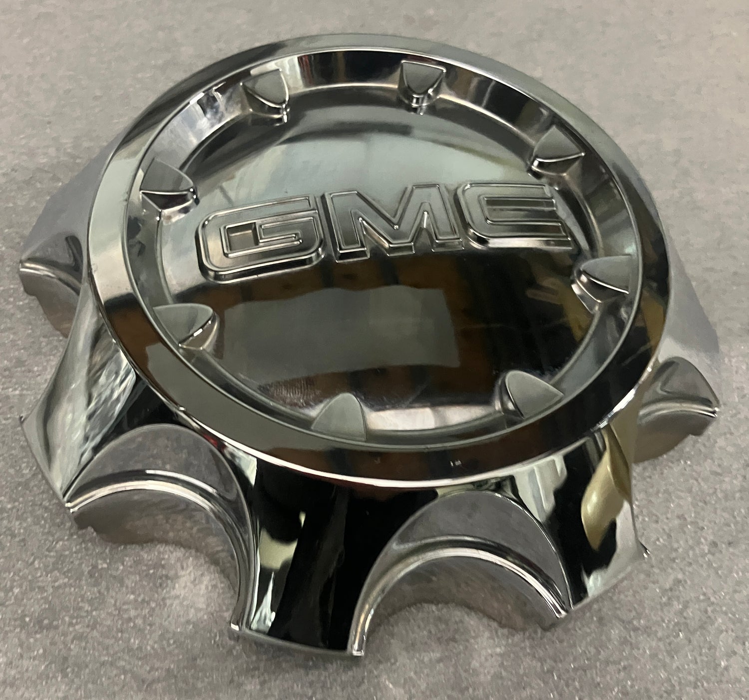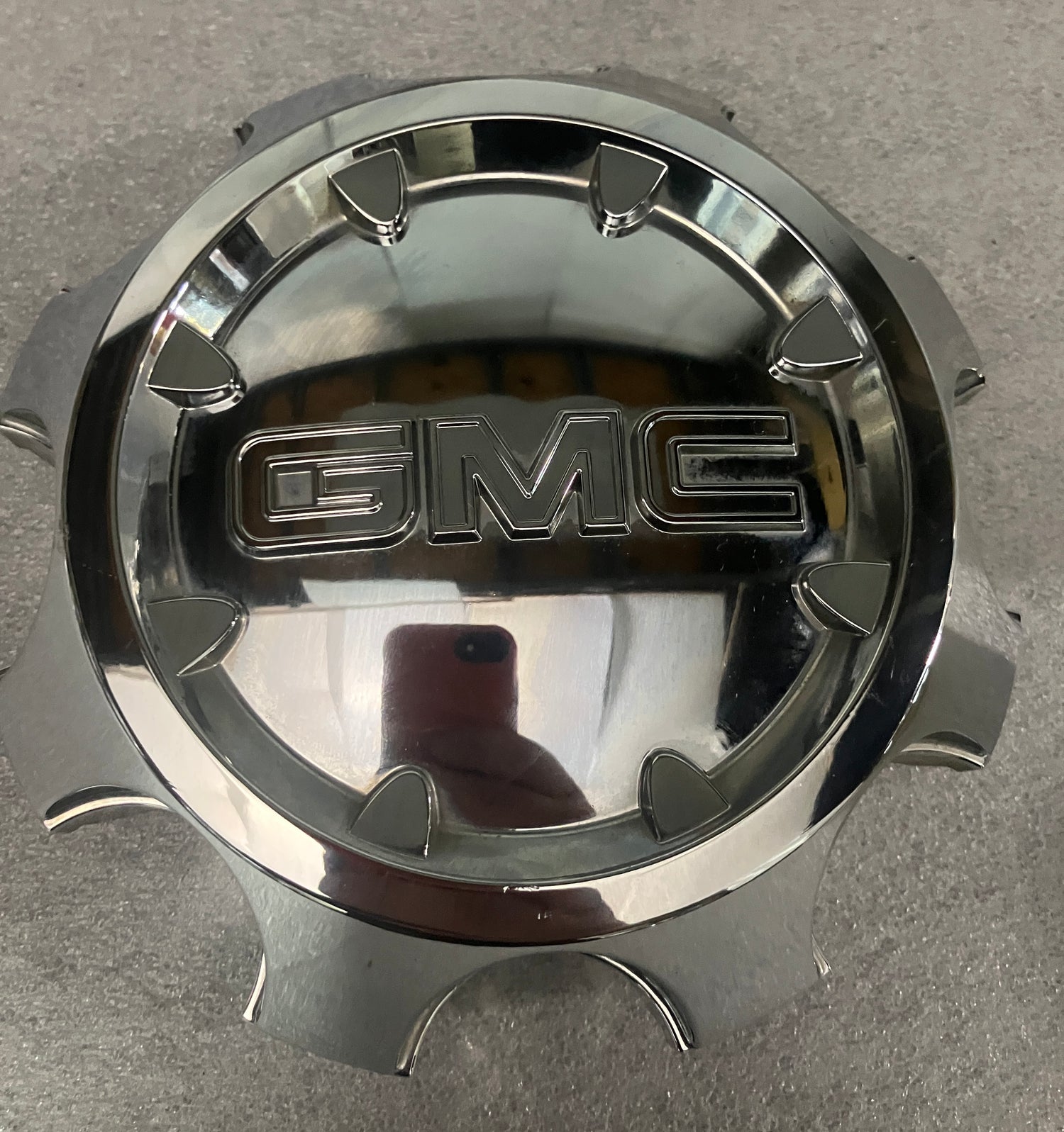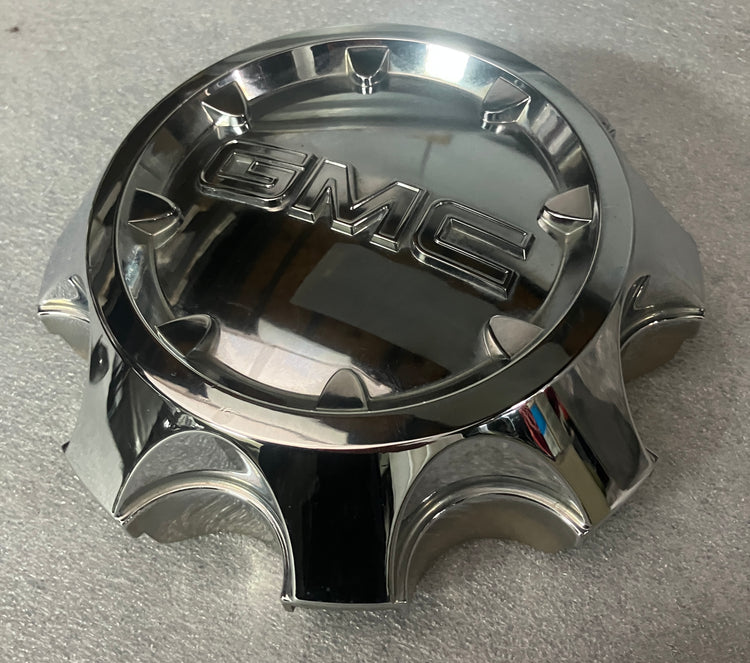 Up for sale we have a nice, used, chrome center cap for GMC 2500 trucks. The cap only has some minor blemishes, please look at the pictures. All the retention clips and ring are intact and in good condition. GMC part number 9597794.