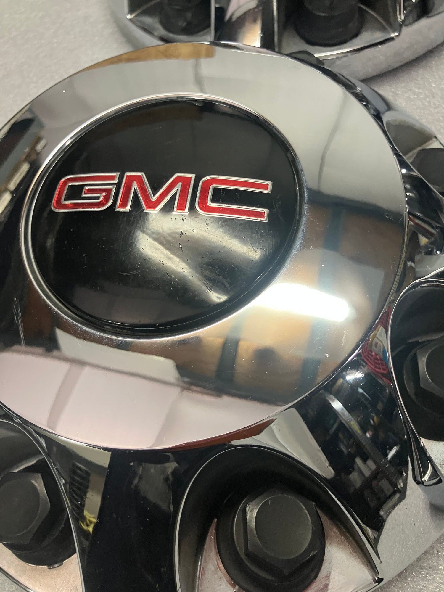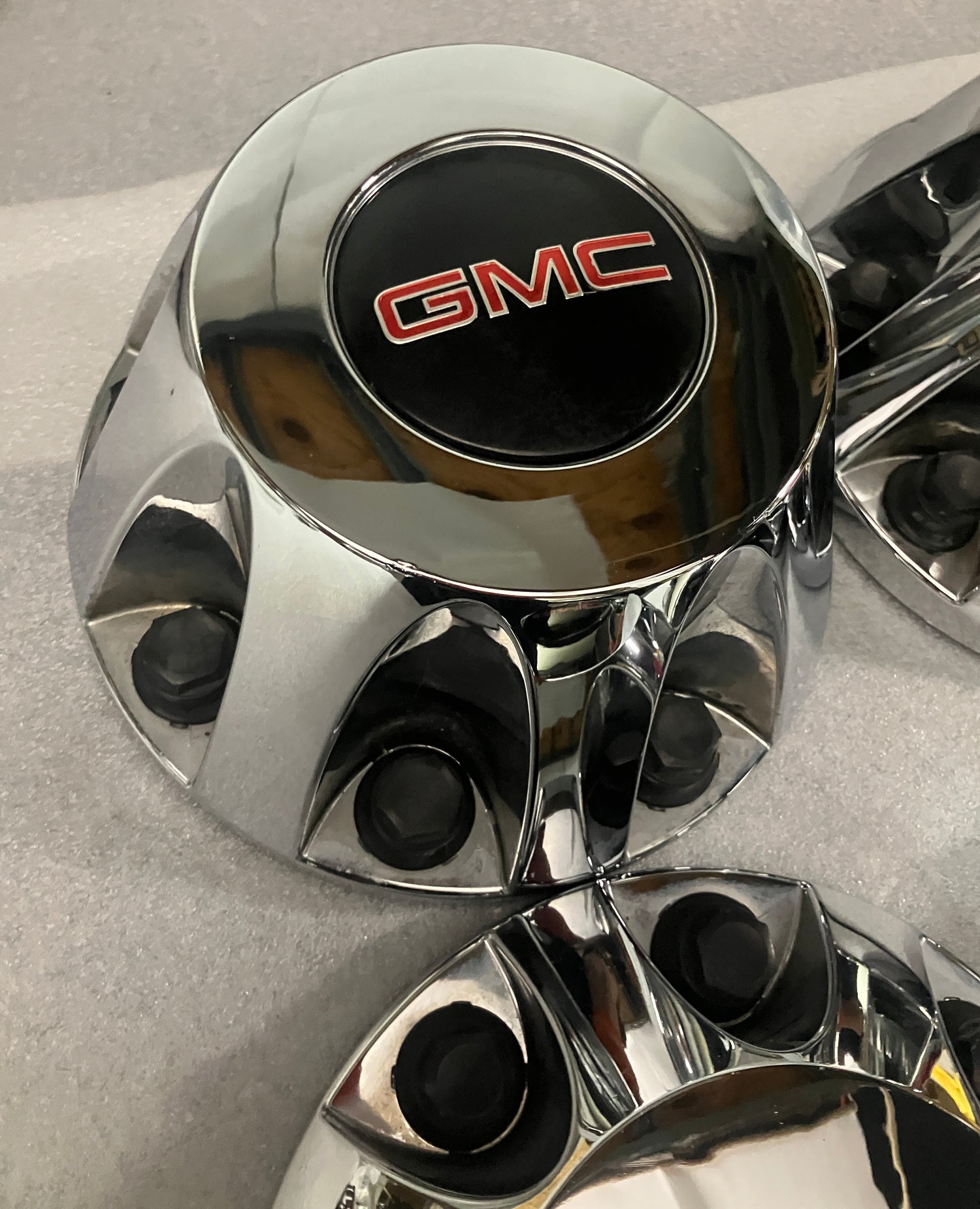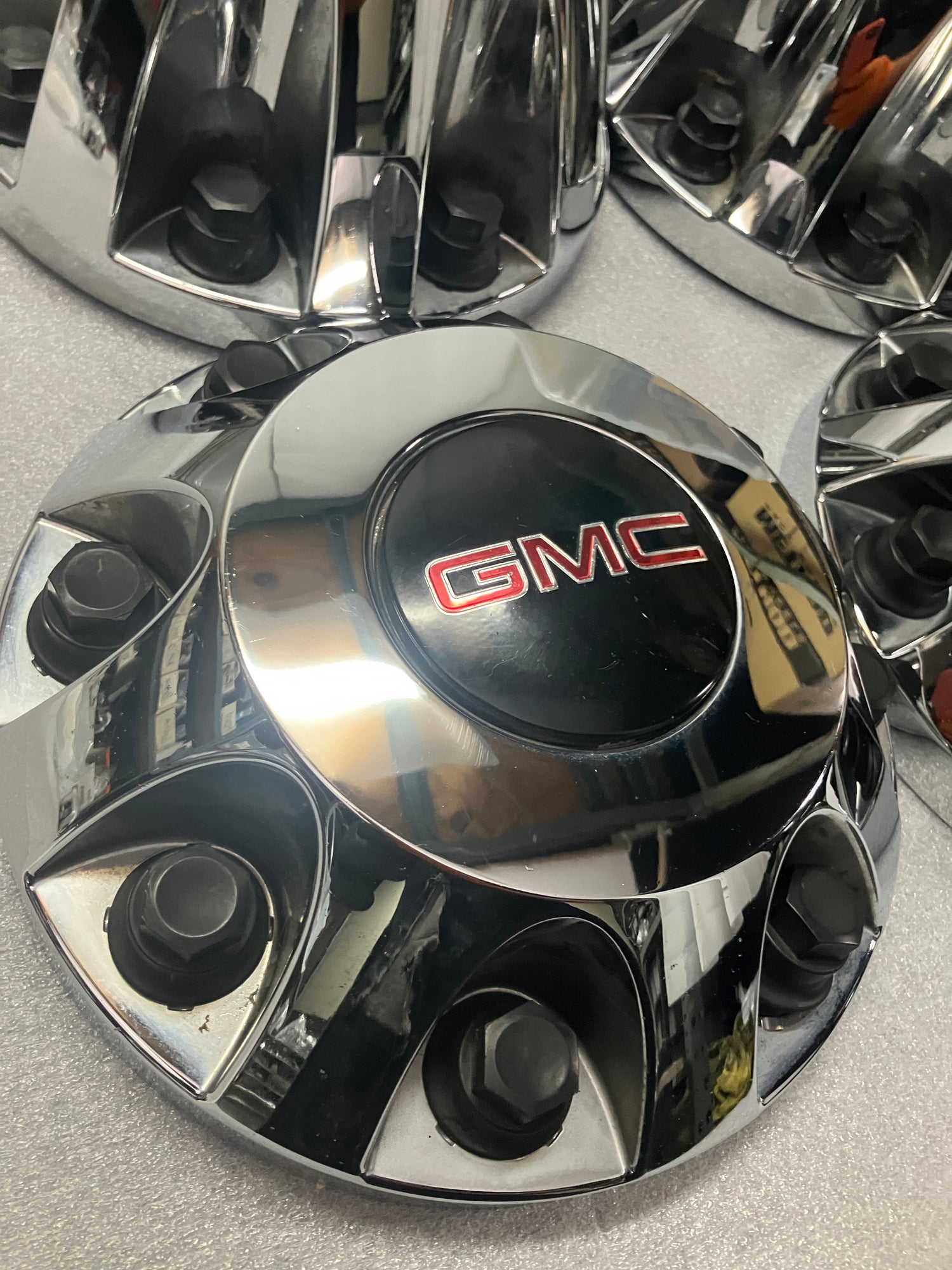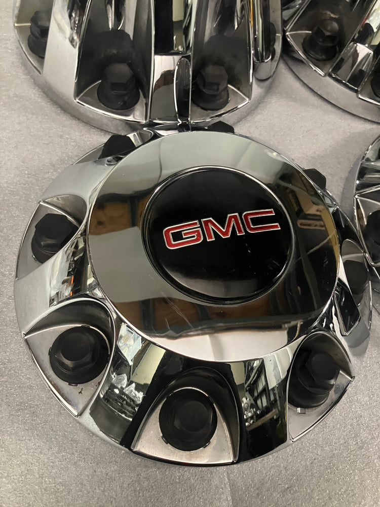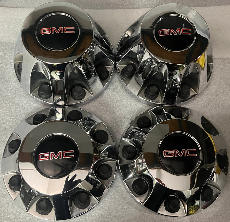 This is a good used, set of 4, OEM GMC center caps. The caps are the chrome finish and have numerous blemishes, please look at the pictures. All the retention nuts are intact and in good condition. GMC part numbers 9597805, and 9597796. These caps are original for GMC Dually trucks from 2011-2023. They will also fit 2024 and 2025 models.
