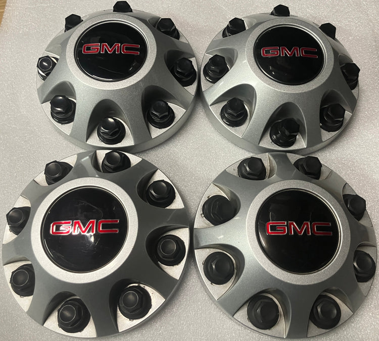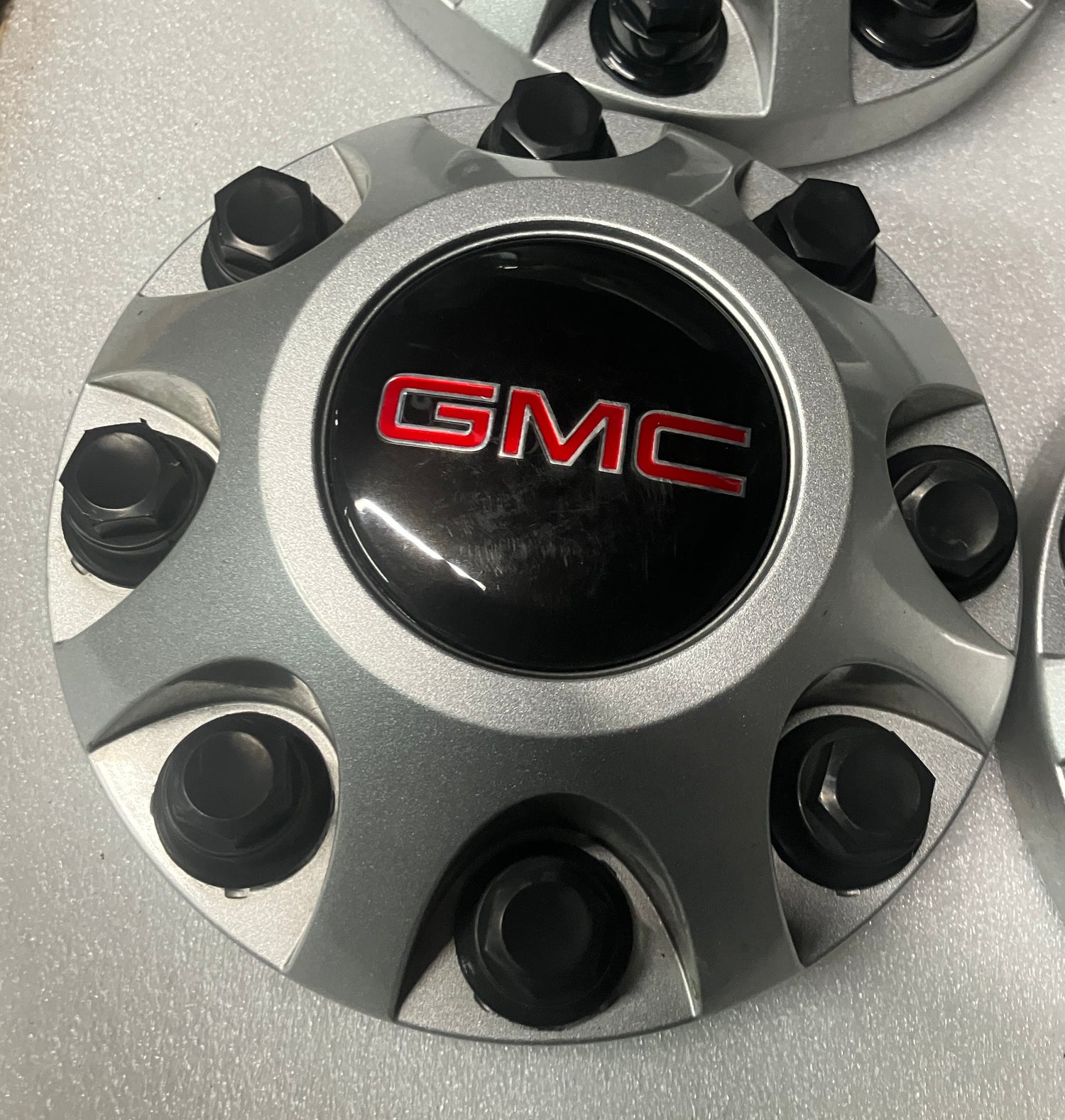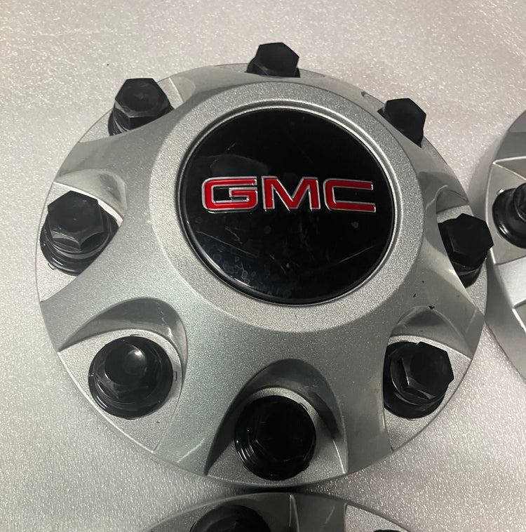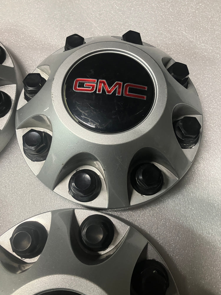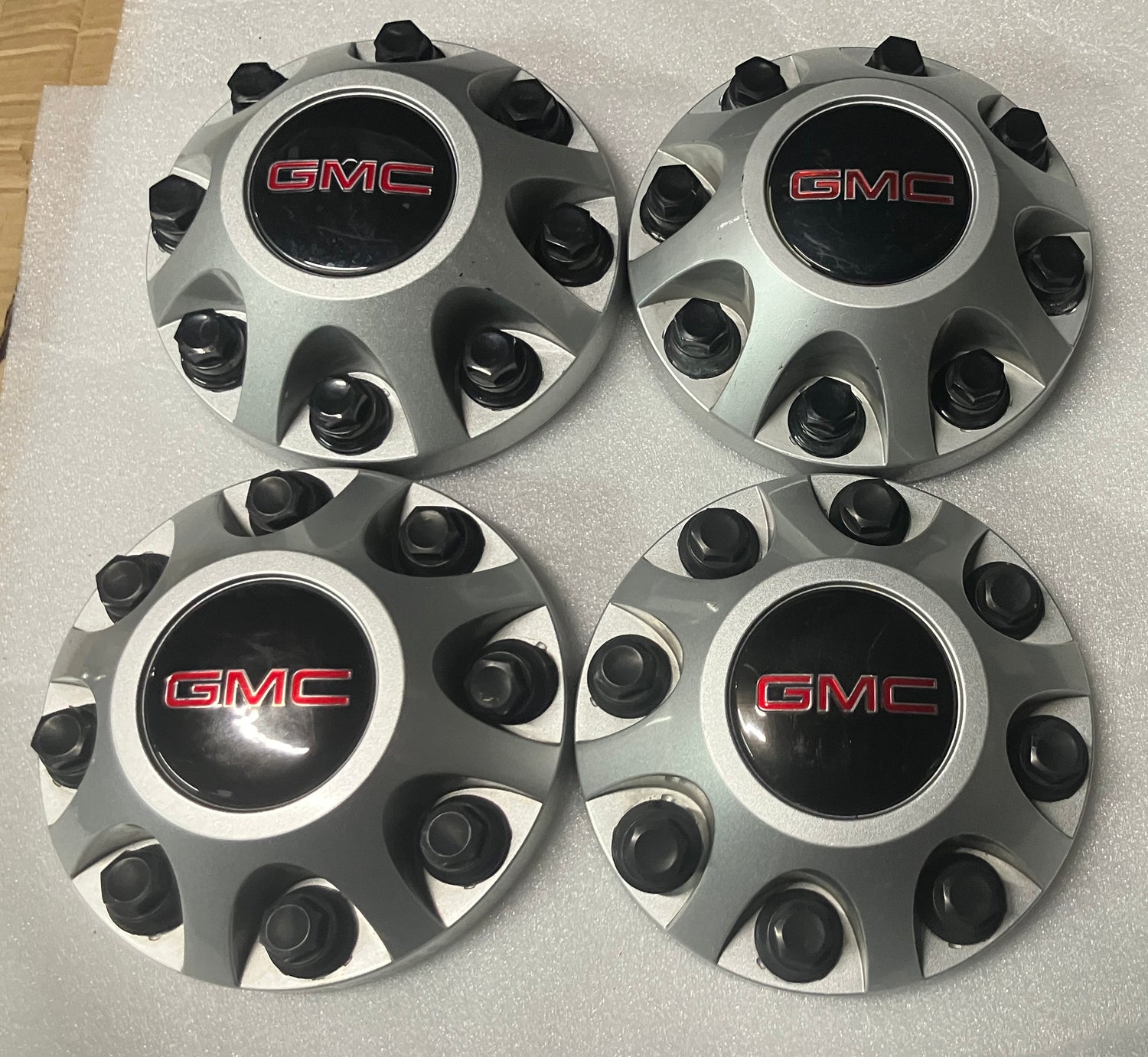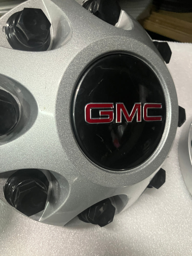 Up for sale is a set of 4, authentic, OEM, GMC, center caps for Sierra 2500. The caps are silver finish with some blemishes. Please look at the pictures. GM part number 9597819.