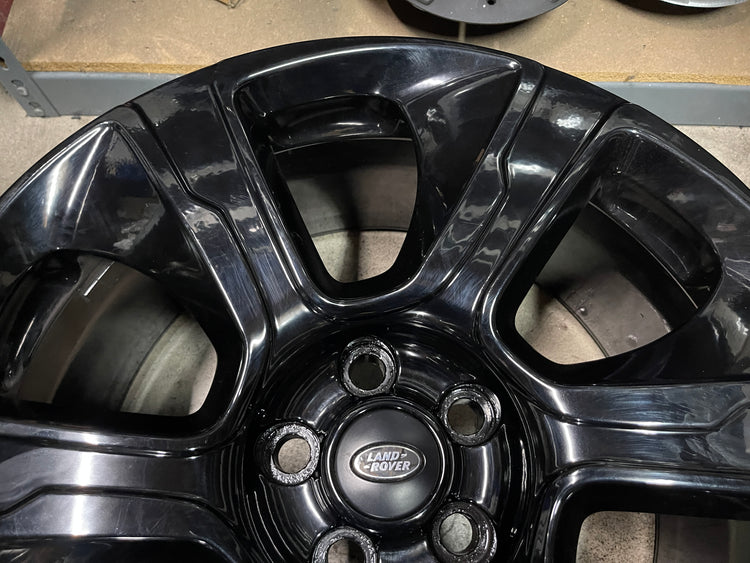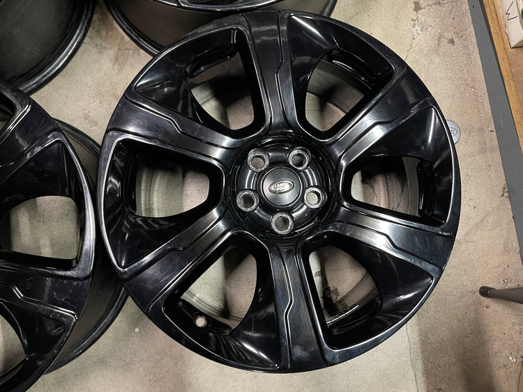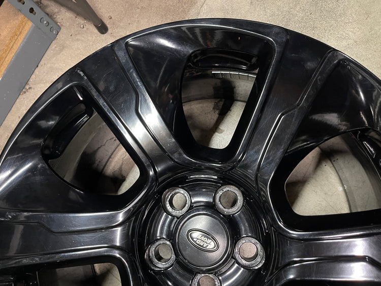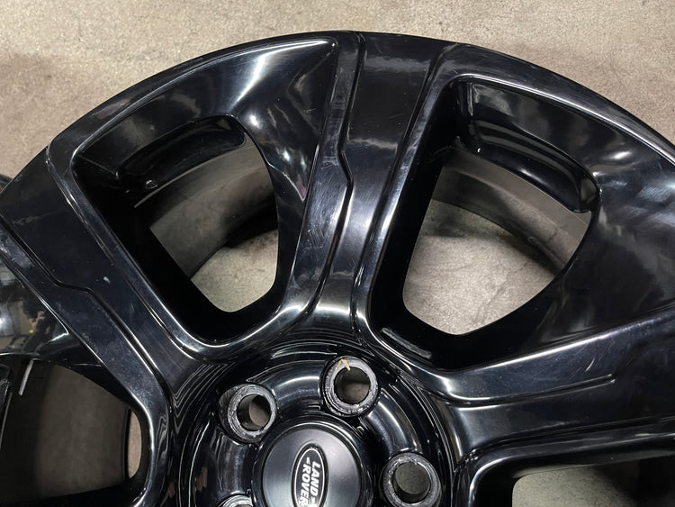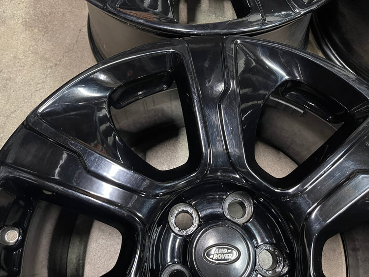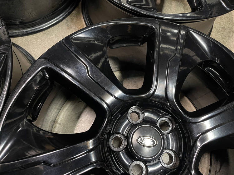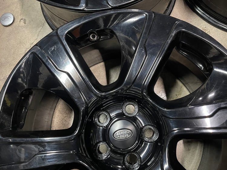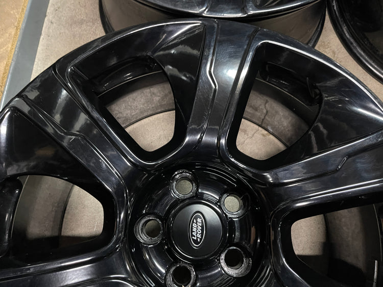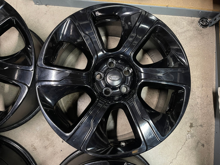 This is a used set of factory 2014 2015 2016 2017 2018 2019 Range Rover Sport 21 inch wheels. Wheels have scuffs as shown in pictures. Gloss Black finish. Caps included. No sensors.