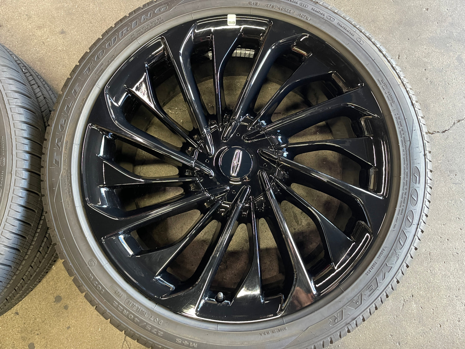 This is a clean Take-off set of factory 2025 Lincoln Aviator Black Label 22 inch wheels and tires (Fits 2020 to 2025 models). The Goodyear Eagle Touring 275/40WR22 have 99% tread remaining (DOT 1525) . Caps included, No sensors.  (Note: All used wheels may have blemishes not visible in pictures when looking up close)