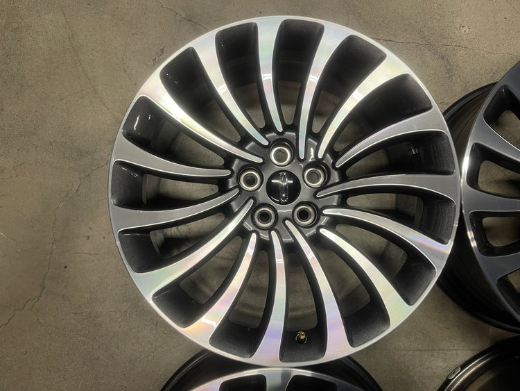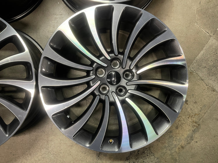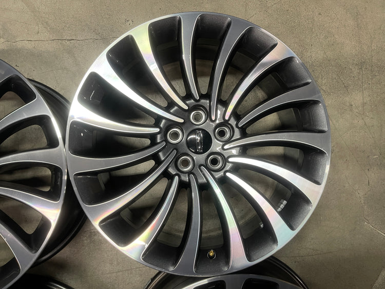This is set a take Off set of factory 2020 2021 2022 2023 Lincoln Aviator 20 inch wheels. One wheel has a minor scuff on spoke, see pictures. Caps included, No sensors.
