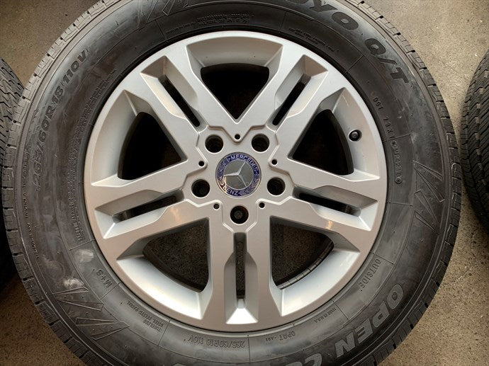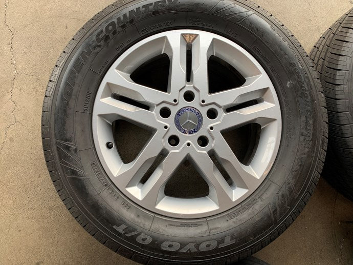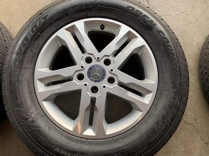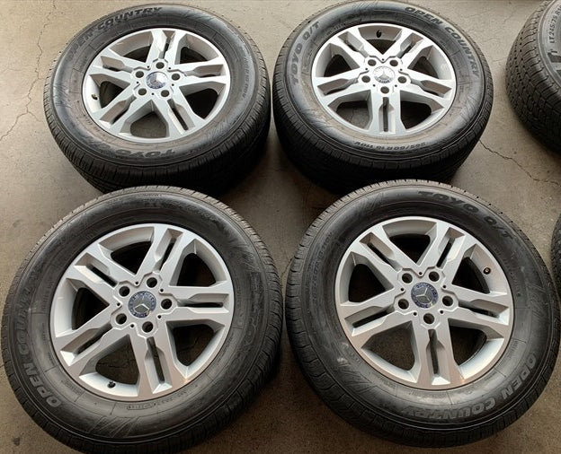 This is a used set of factory 2011 2012 2013 2014 2015 2016 MBZ G550 18 inch wheels and tires. The Toyo Open Country QT 265/60HR18 tires have 3 tires at 82% tread remaining and one new take Off. (New is 11/32nd). Caps included, NO sensors.