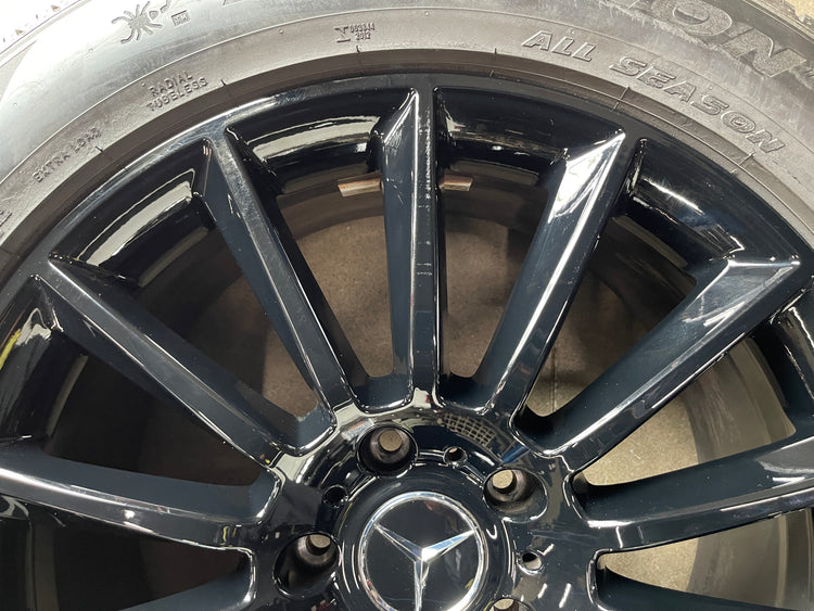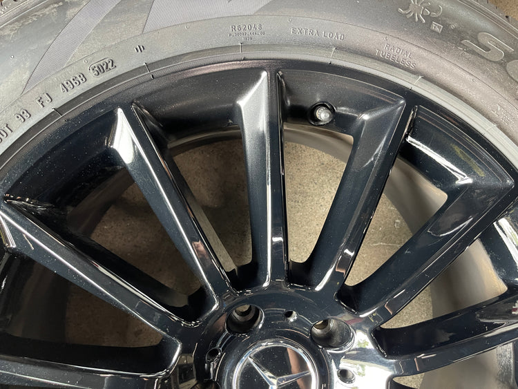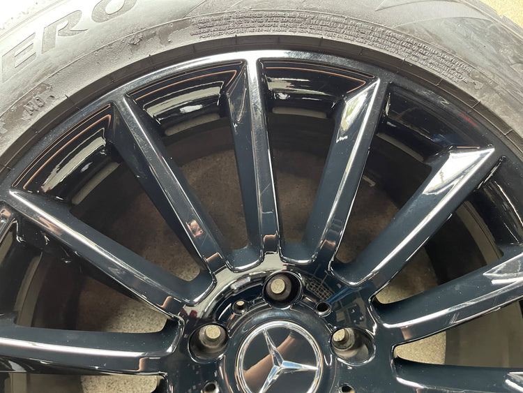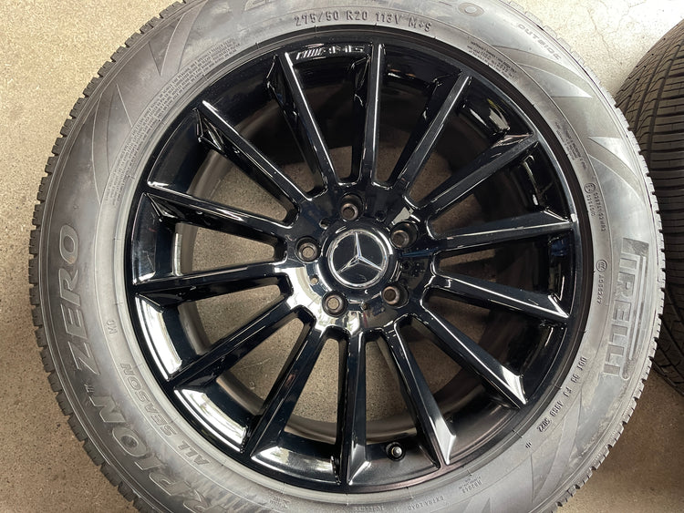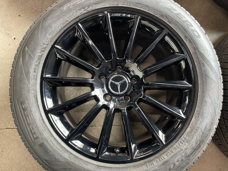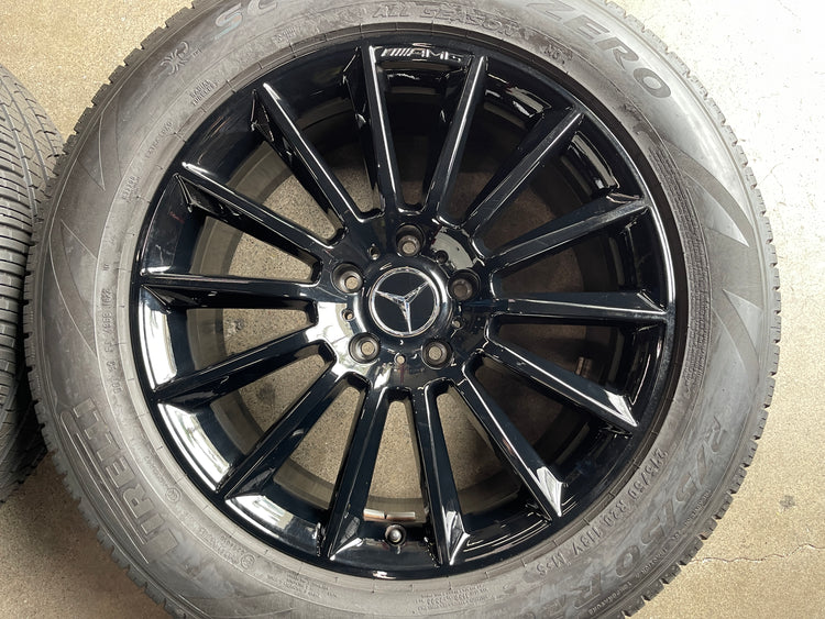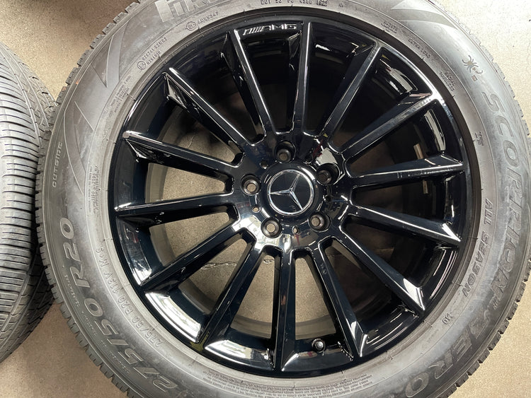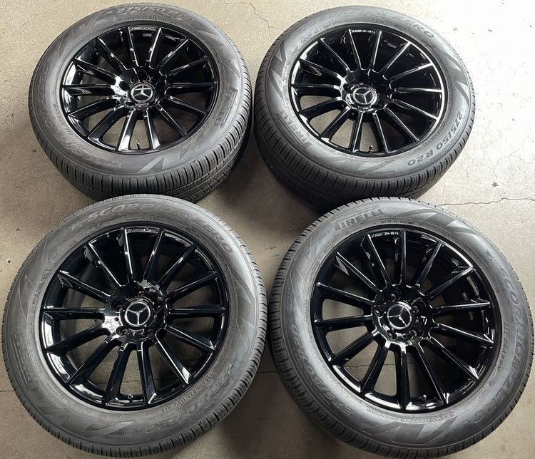This is a gently used set of 2018 2019 2020 2021 factory MBZ G550 G63 factory 20 inch AMG Wheels and tires. Gloss Black Factory Finish. Light surface scratches, one wheel has partial refinishing on the edge, as shown in pictures. The Pirelli Scorpion Zero A/S 275/50VR20 tires have 90% tread and 80% tread remaining,(DOT 5022) . Caps included, NO sensors.