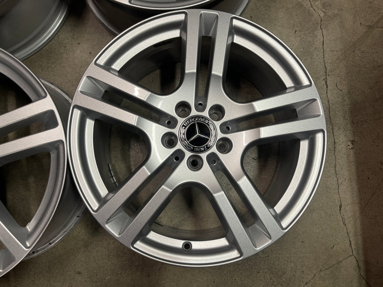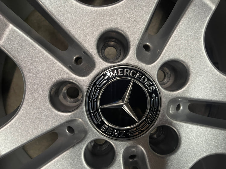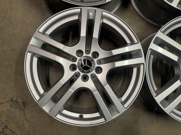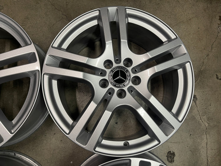 This is a used set of factory 2021 2022 Mercedes-Benz MBZ GLA 250 18 inch wheels. A couple scuffs, as shown in pictures. Caps included. no sensors.
