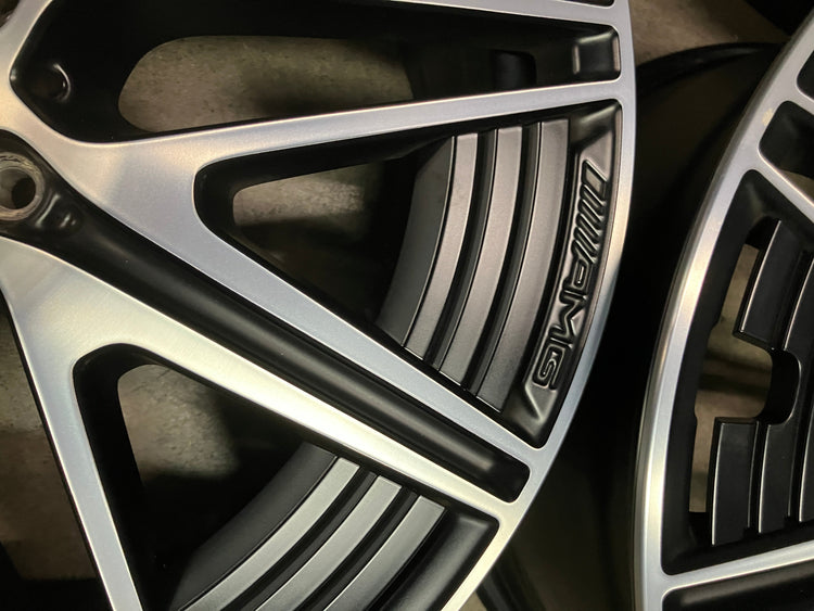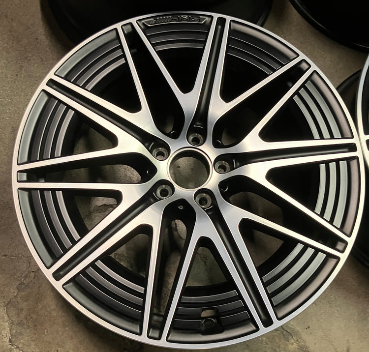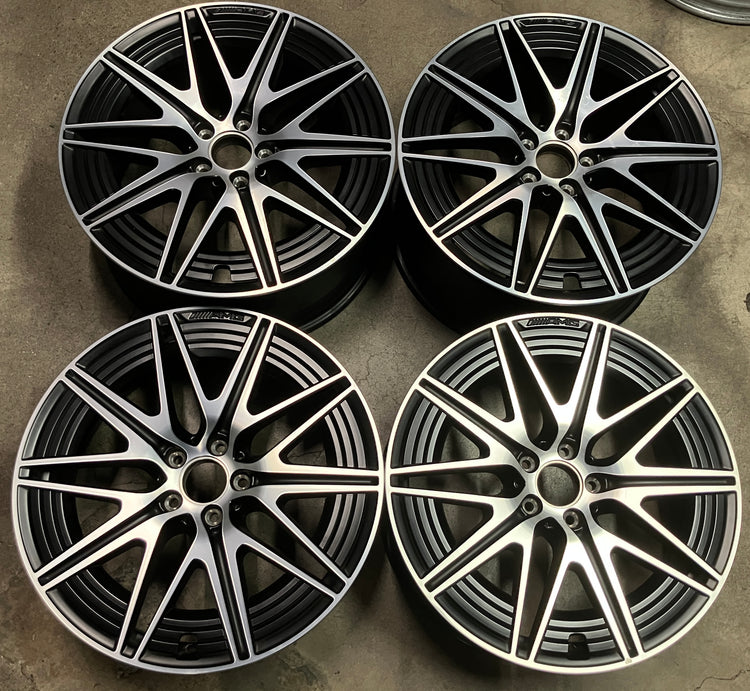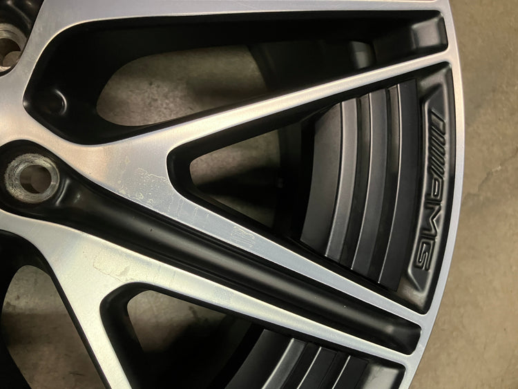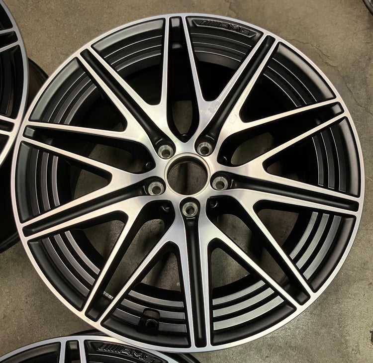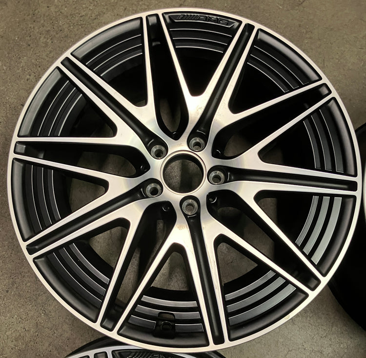 This is a used set of factory 2023 C43 AMG 20 inch wheels. Wheels have blemishes, three have been professionally straightened on the back lip (Both Front & one rear) No caps, no sensors. (All used wheels can show some light scuffs not visible in pictures when looking up close)