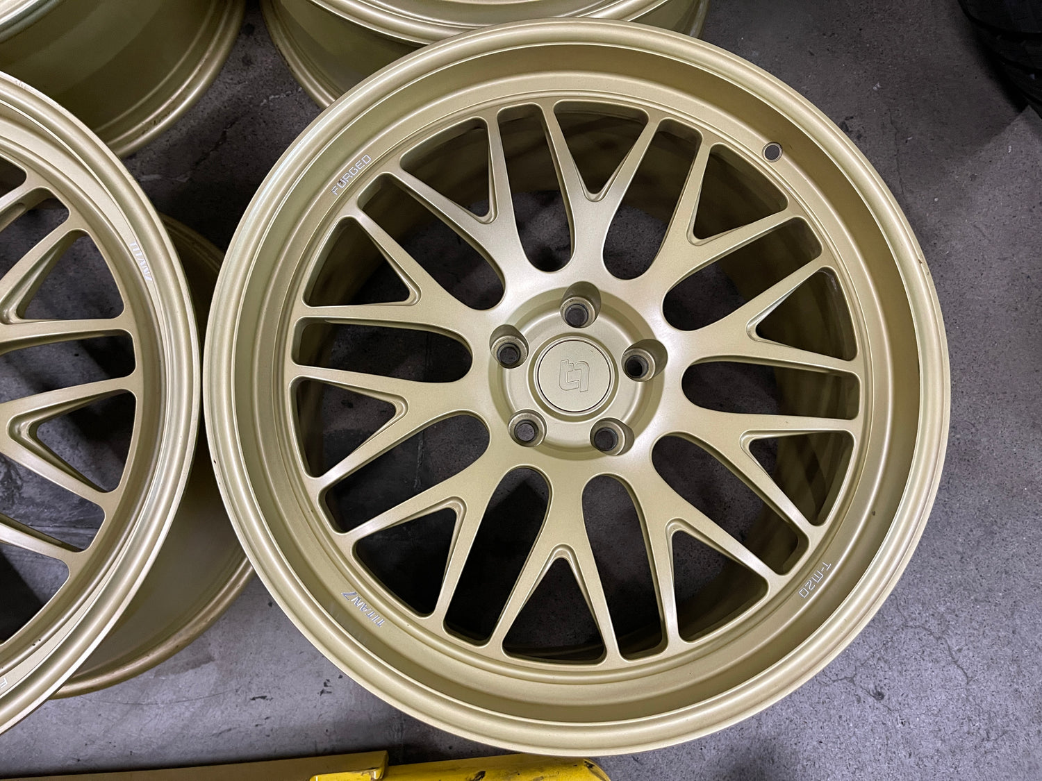 For sale is a clean set of Titan 7 TM20 Forged 20 Inch gold wheels, to fit your 2022 to 2026 Lotus Emira. Take Offs / Trade Ins / Mounted / Open box / lost sales / Inventory clearance / Sold as is / No returns / No refunds / 50% off list with free shipping. Caps included, No sensors. 20x9 +55 and 20x11 +54 5x4.5
