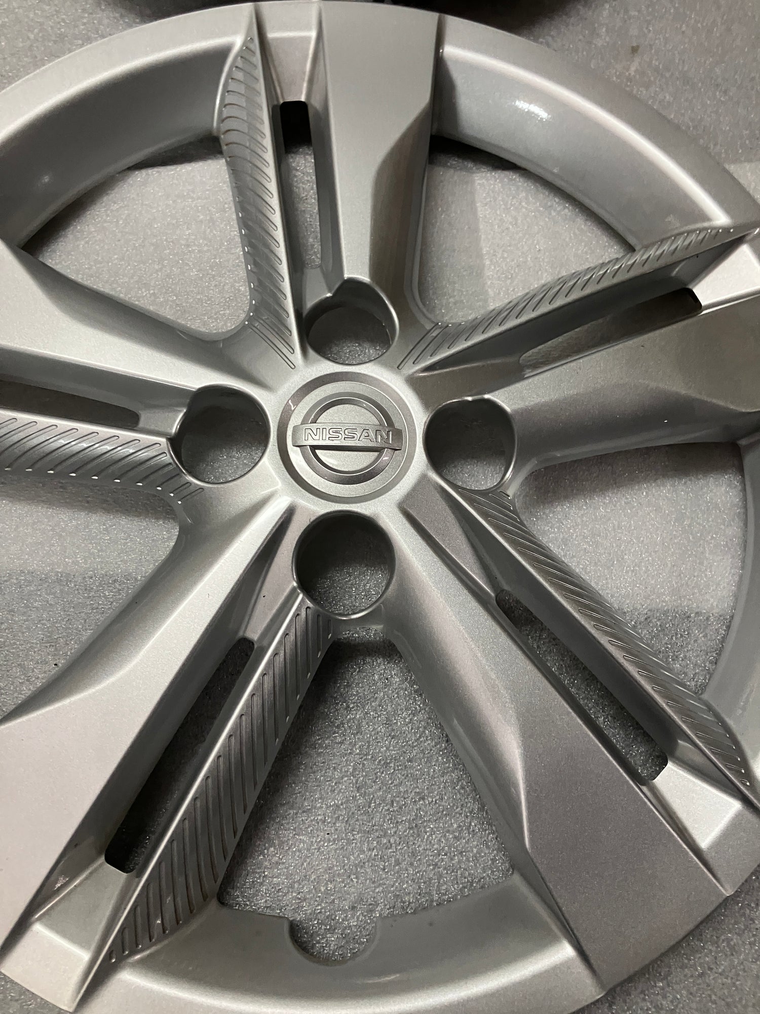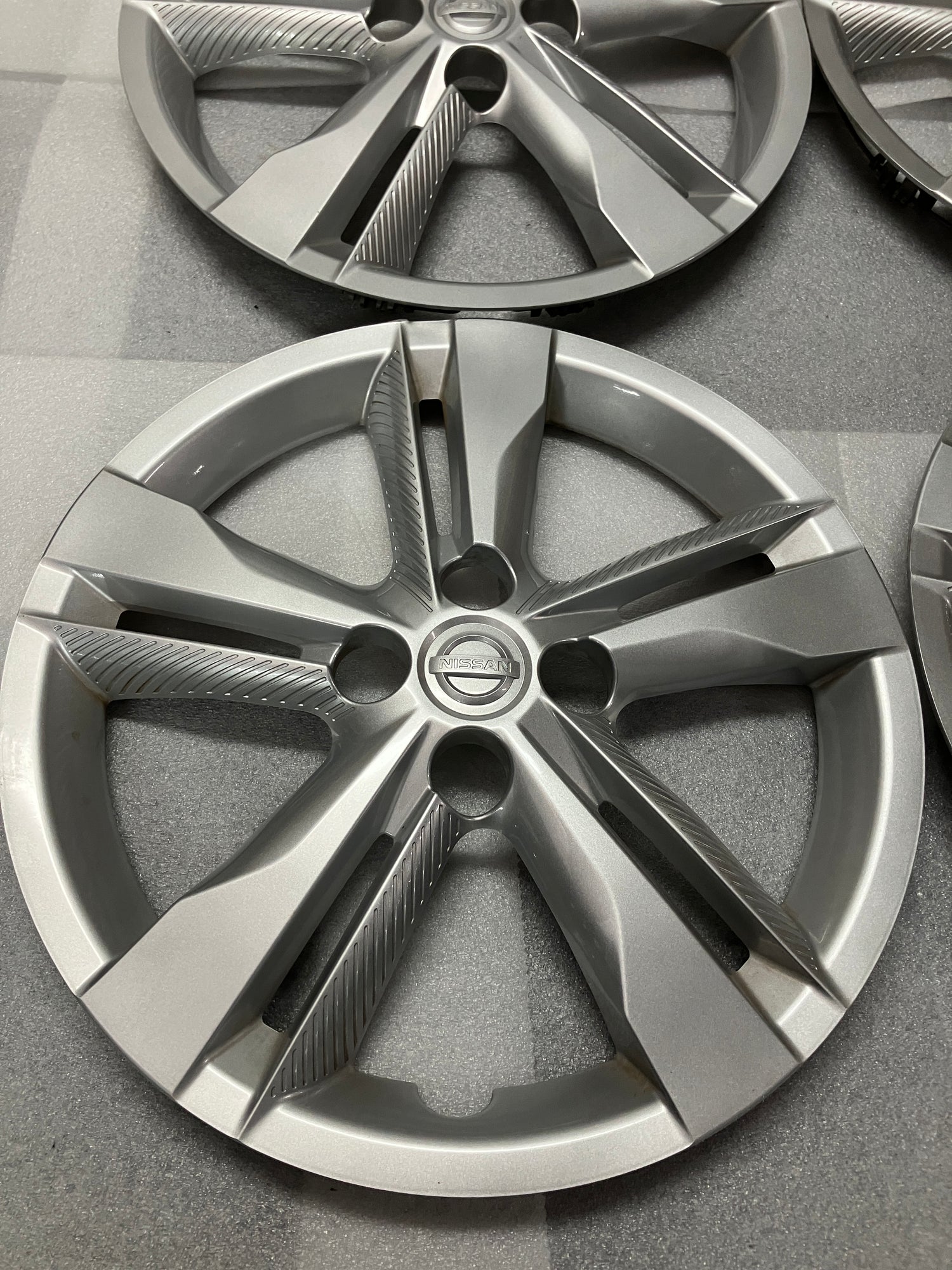 Up for sale we have a set of 4 16" Nissan Kicks OEM hubcaps. These are authentic Nissan caps. All the retention clips and rings are intact and in good condition.