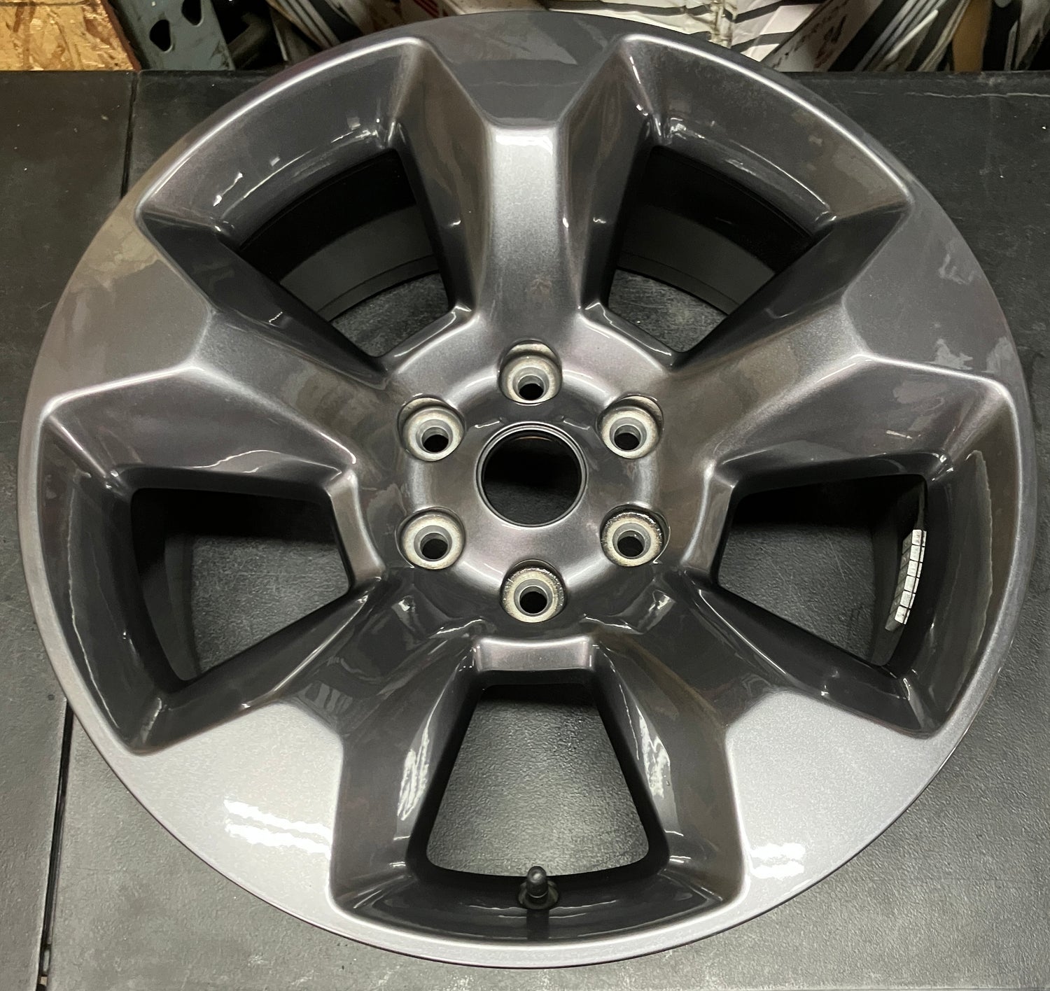 Authentic MOPAR (MOPAR or no car) wheel. This is a clean take off wheel, it is off of the "Built To Serve" 2024 edition RAM 1500 with a charcoal finish. No Cap, No sensor. Note: All used wheels may have light blemishes not visible in pictures when looking up close.