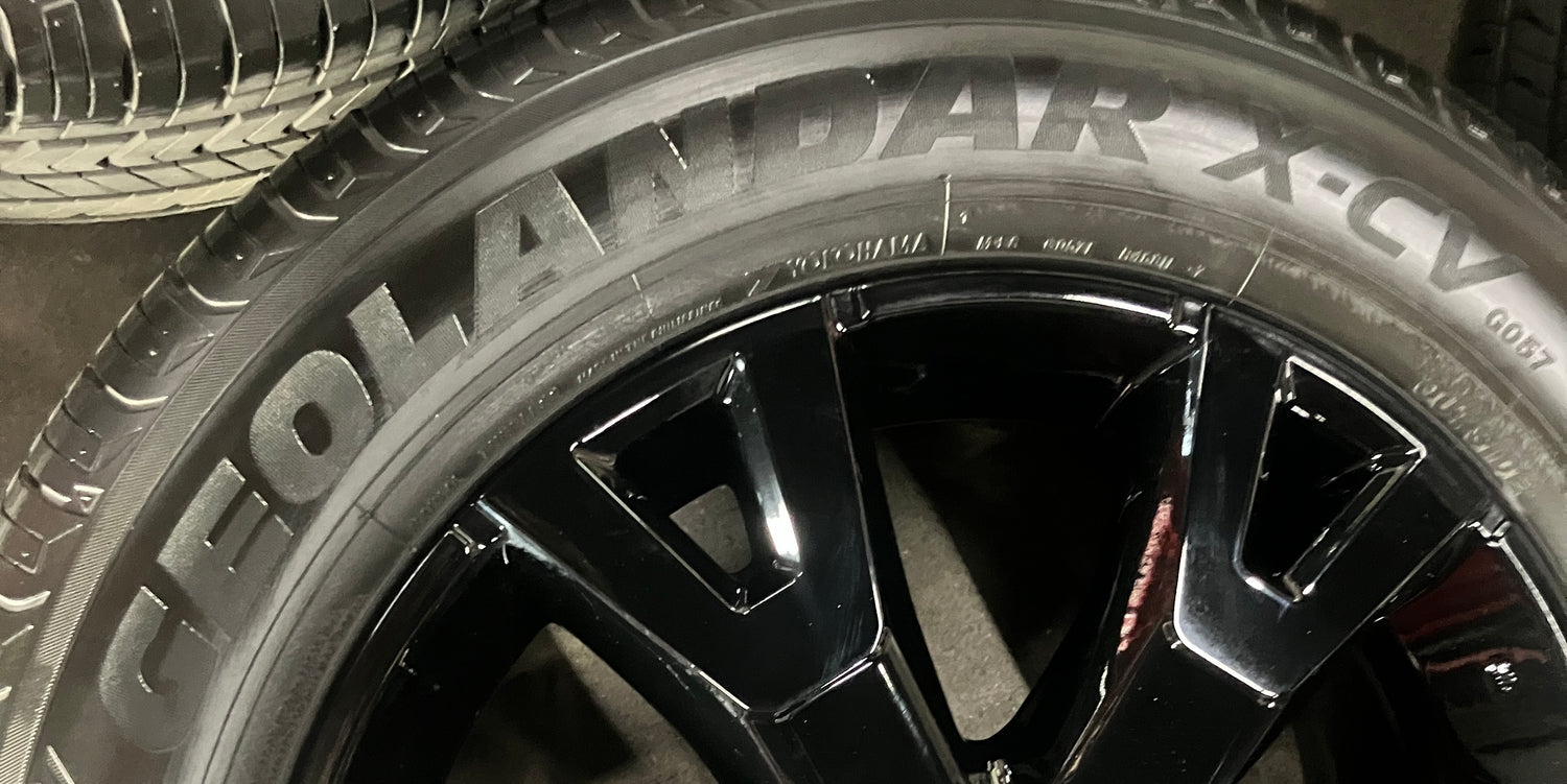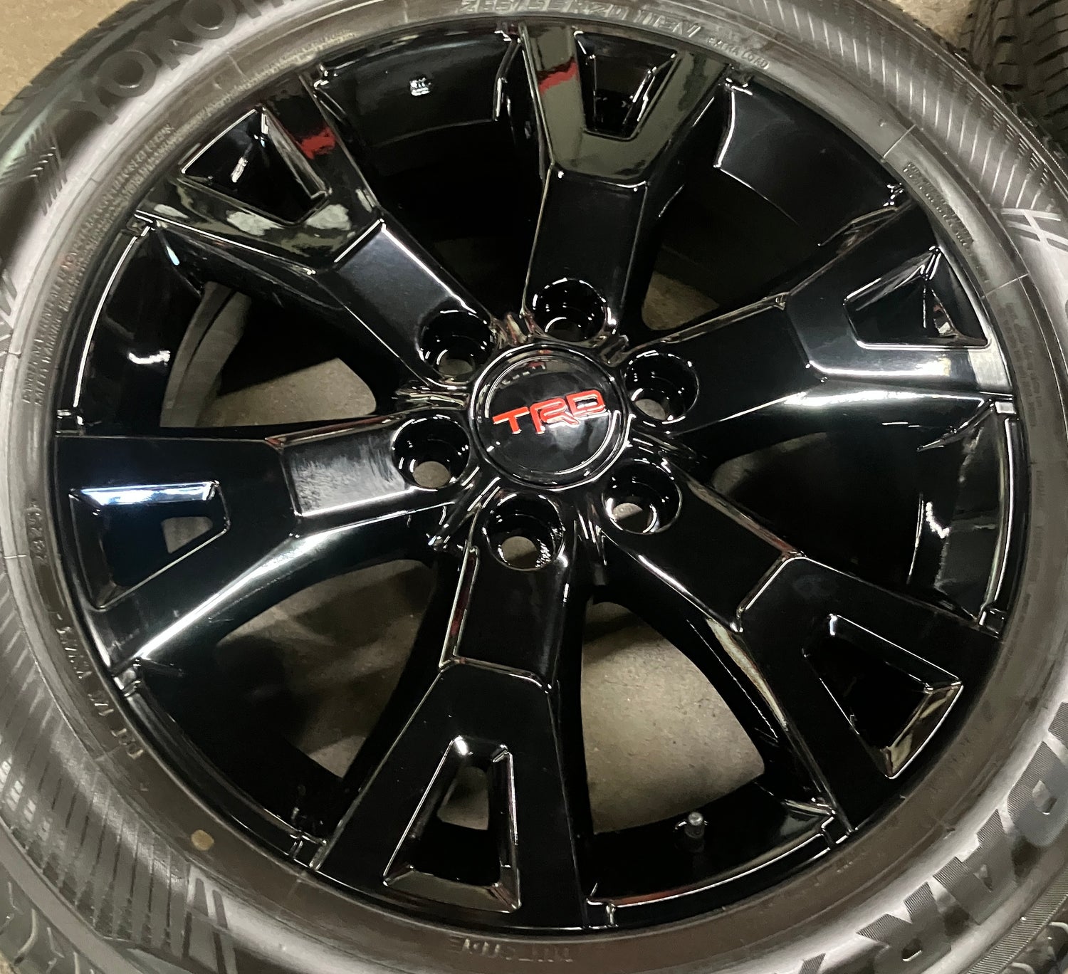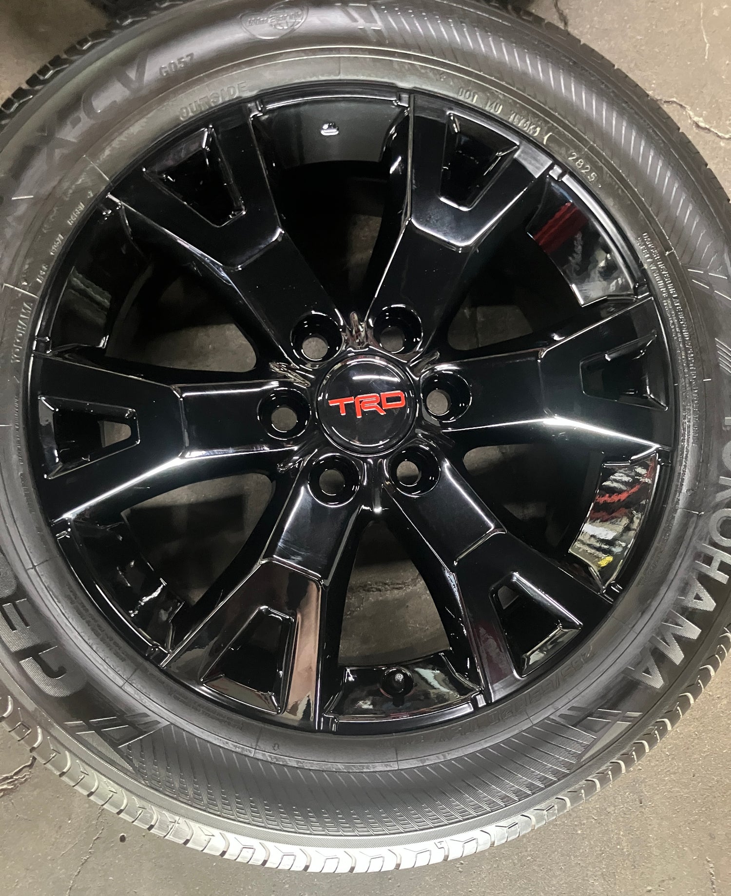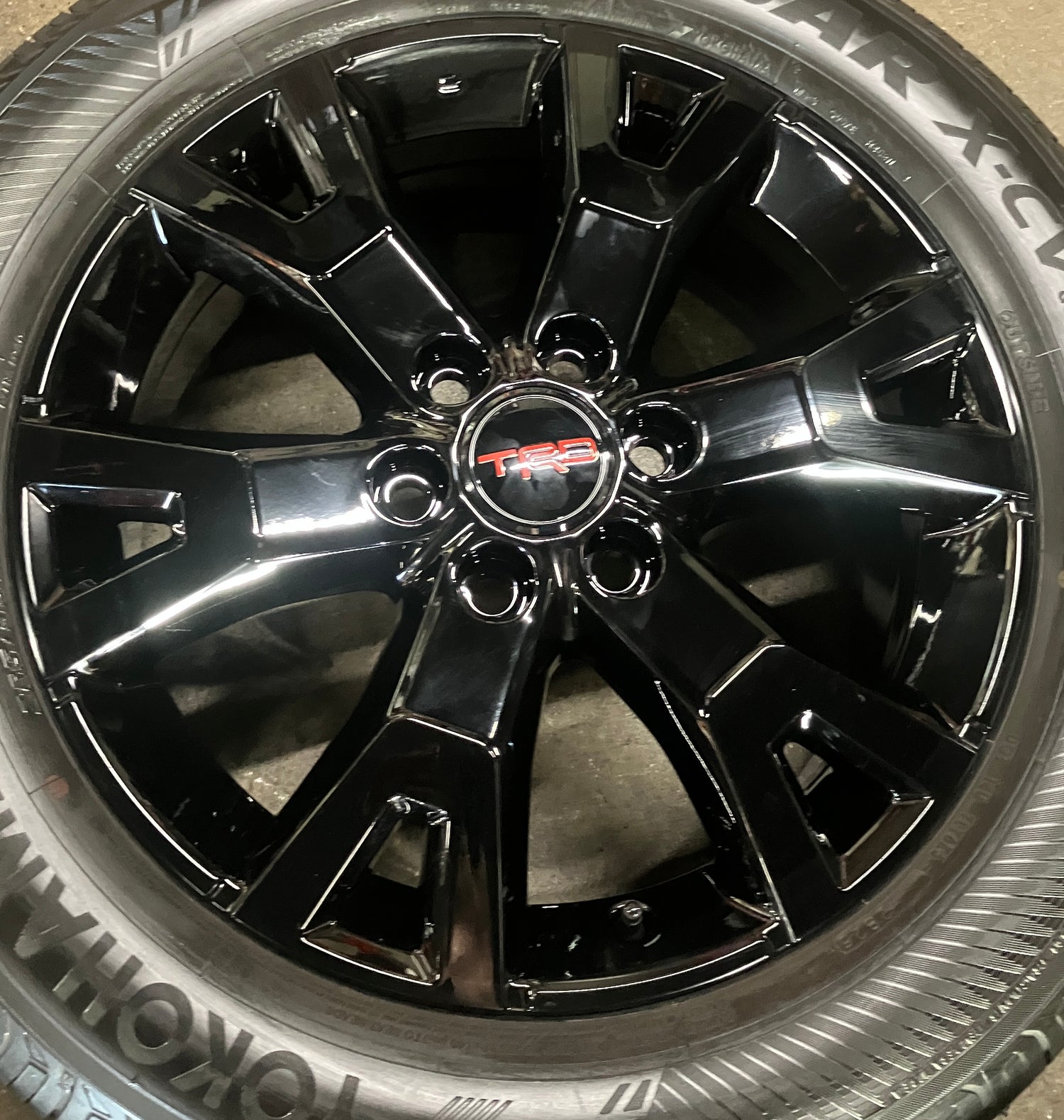 This is a set of factory 2024 2025 2026 Toyota 4Runner TRD Sport 20 inch wheels and tires. Refinished in gloss black powder coating. The gently used Yokohama Geolander X-CV GO57 265/55VR20 tires have 90% tread remaining (9/32nd out of 10/32nd new)(DOT 2825). Caps included. No sensors. Fits your 2024 2025 Tacoma. (All used wheels can show some light scuffs not visible in pictures when looking up close)