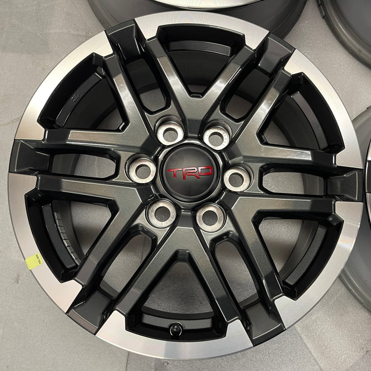 This is a cleanTake-off set of factory 2024 2025 2026 Toyota Tacoma TRD 18 inch wheels. Caps included. No sensors. Does NOT fit prior years (higher offset, smaller center bore(All used wheels can show some light scuffs not visible in pictures when looking up close)