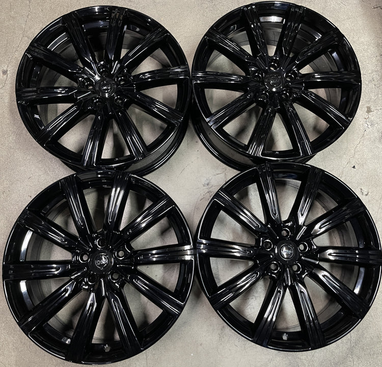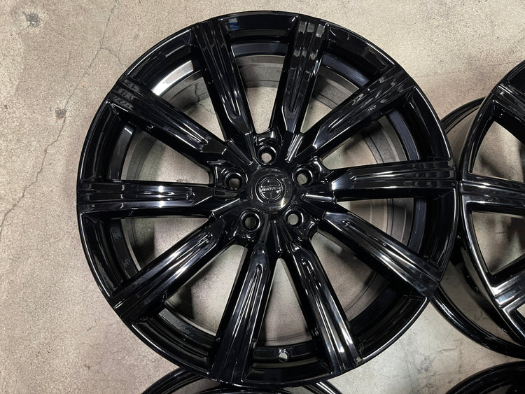 This is a set of factory 2018 2019 2020 2021 Volvo XC60 19 inch wheels. Refinished with a gloss black powder coat finish. Caps included, No sensors.