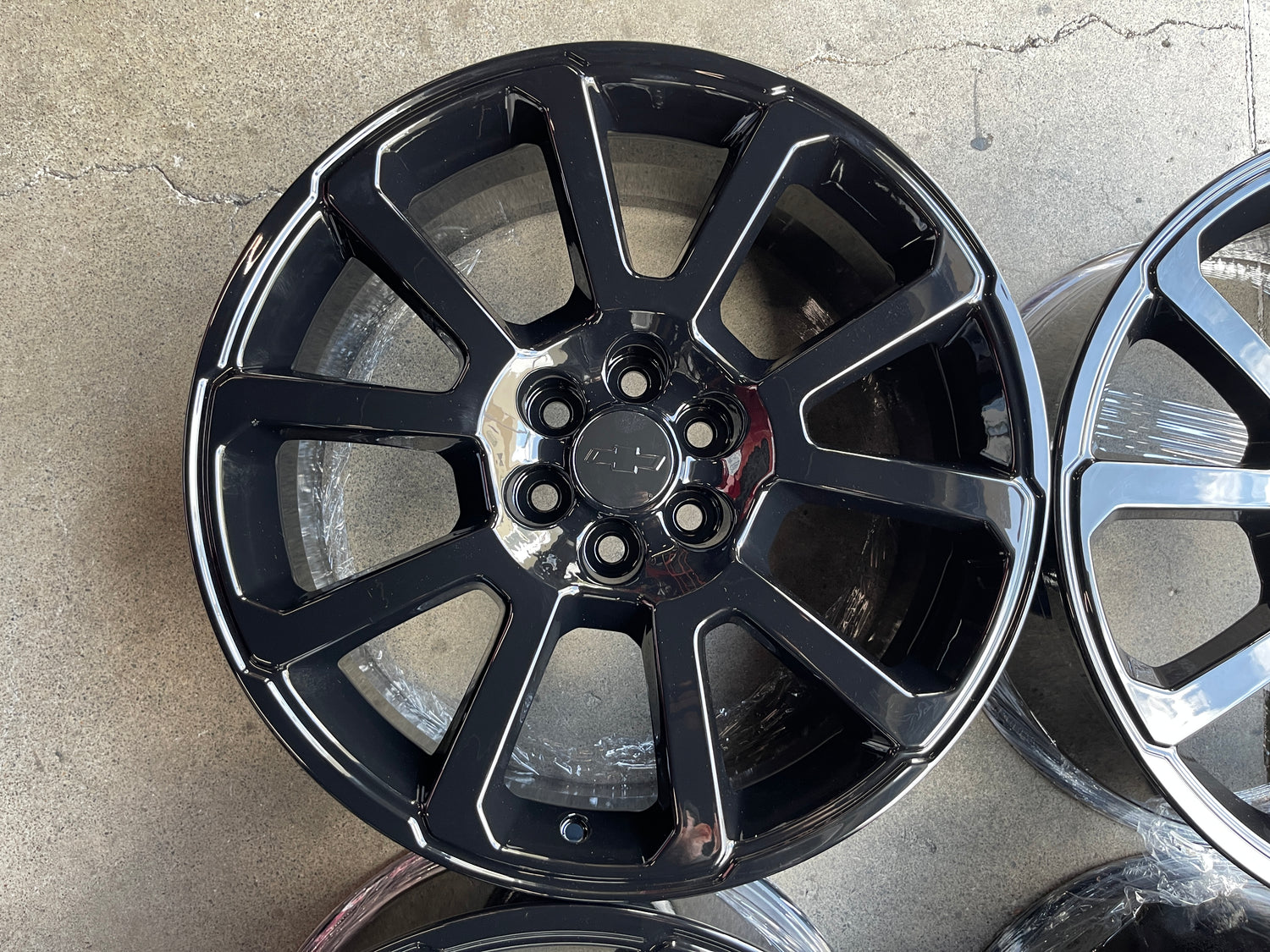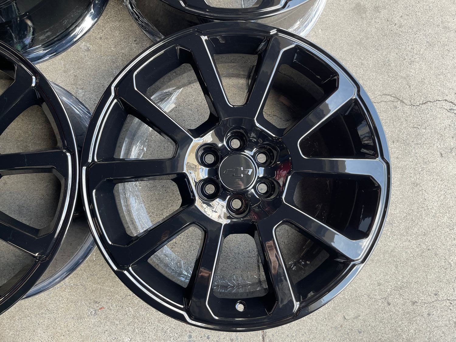This is a set of factory 2018 2019 2020 2021 2022 Chevy Colorado / GMC Canyon 20 inch wheels. Refinished with a gloss black powder coat finished. Painted Chevy Caps included. No sensors. Also fits your 2015 2016 2017 2018 2019 2020 2021 2022 GMC Canyon . Bolt Pattern 6x120