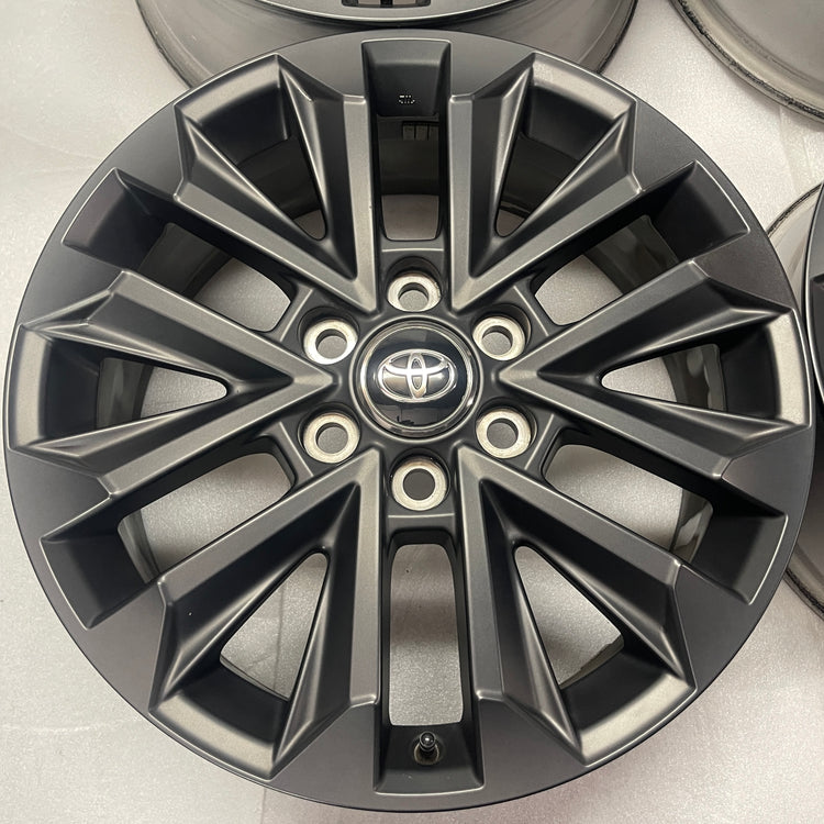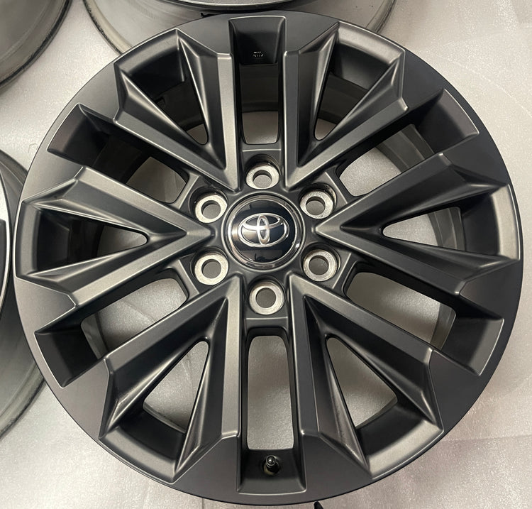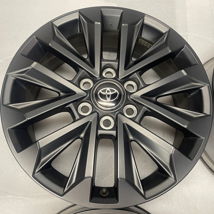 This is a Clean used set of factory 2025 2026 Toyota land Cruiser 20 inch wheels. Has some minor scuffs. Caps included. Caps included. No sensors. 6x139.7 Fits 2020 and newer Tundra. (All used wheels can show some light scuffs not visible in pictures when looking up close)