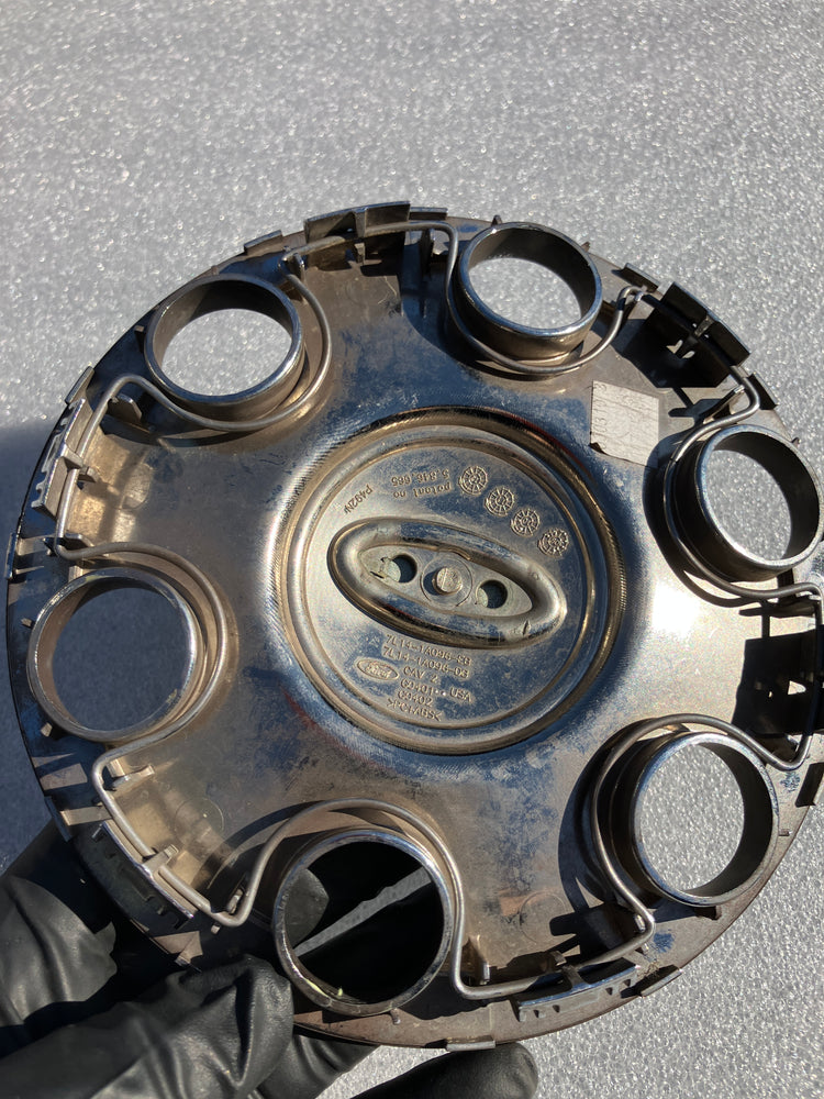 This is a single (1) OEM Chrome Ford center cap. The cap has numerous blemishes so please look at the pictures. The chrome still shines nicely and all the retention clips and ring are intact. Ford part numbers 7L14-1A096-DB, and 7L14-1A096-DA. Interchange wheel number 3788.